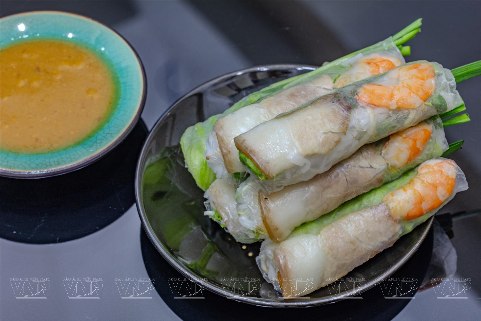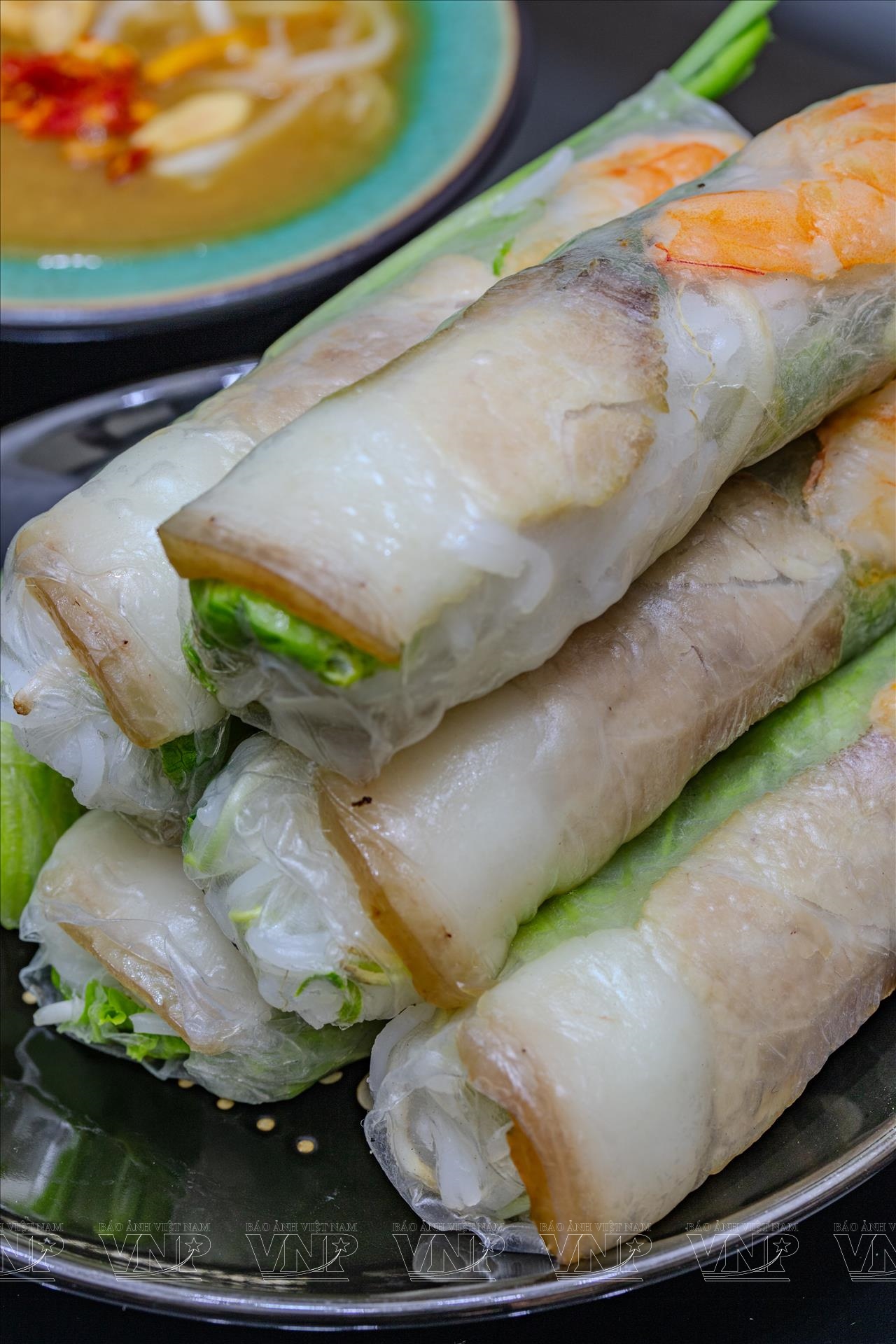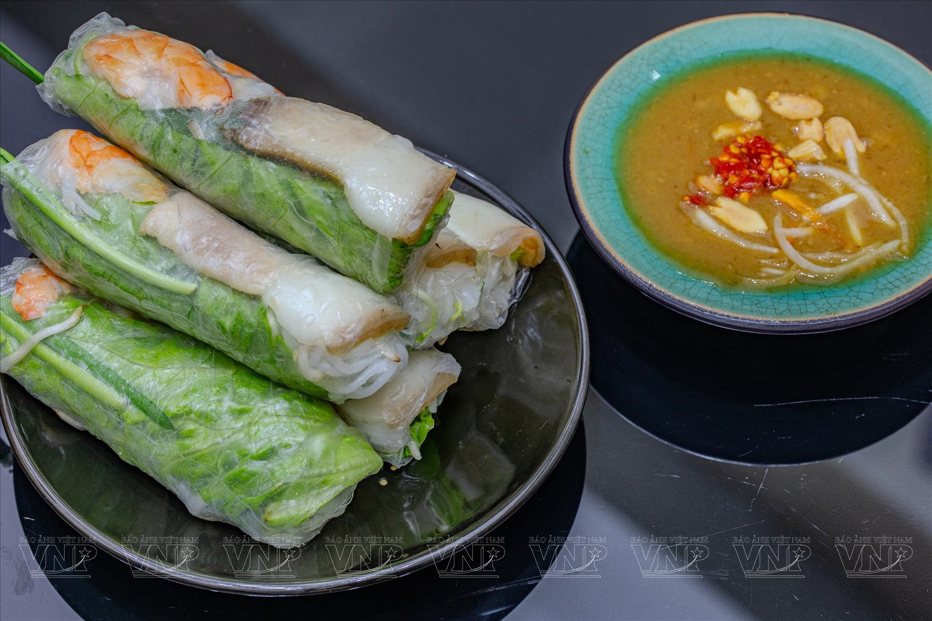 Gỏi cuốn Sài Gòn - kiệt tác ẩm thực thanh mát với sự kết hợp tinh tế của các nguyên liệu tươi sống, dùng kèm hai bản phối nước chấm đặc trưng: tương đậu phộng bùi béo và mắm nêm đậm vị. Ảnh: Nguyễn Luân/Báo ảnh Việt Nam