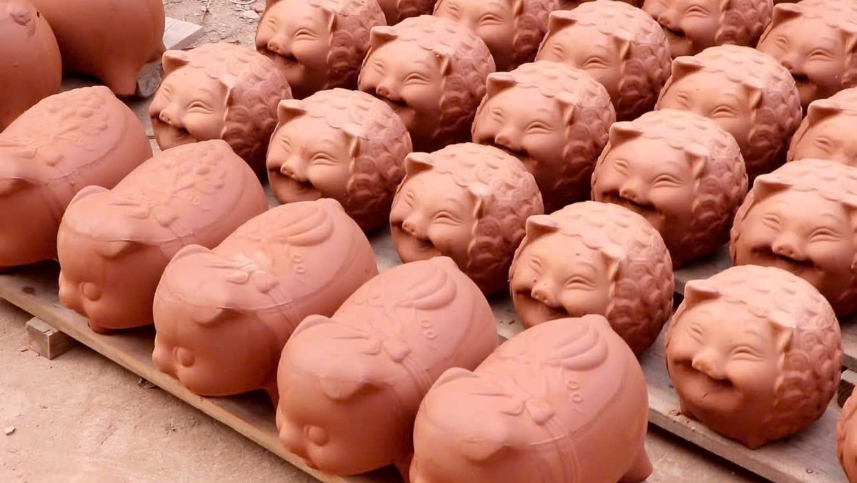 Những chú heo đất ngộ nghĩnh, nhiều màu sắc, từ lâu không chỉ là món quà gắn với tuổi thơ của bao thế hệ trẻ em, mà còn là kết tinh của đất, lửa và bàn tay lao động tỉ mẩn của những người thợ thủ công.