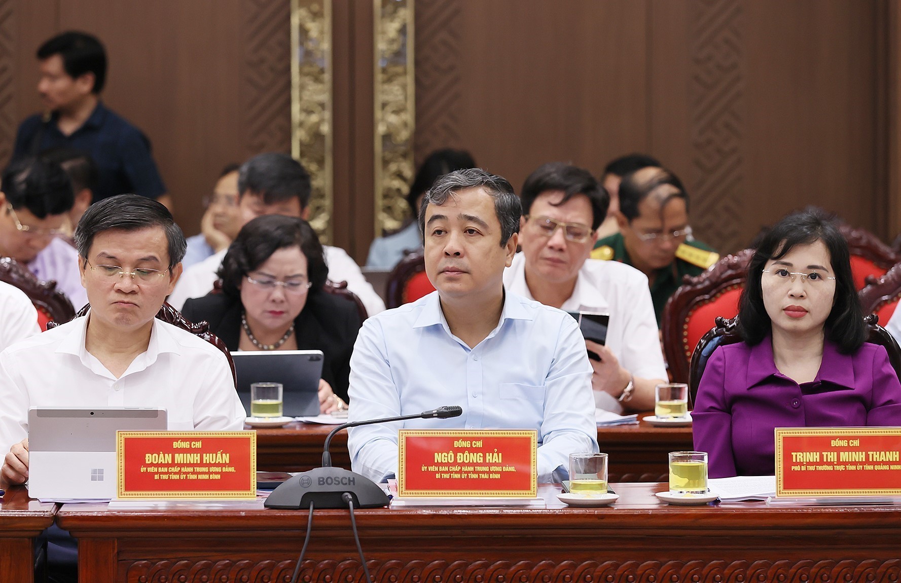 Bí thư Tỉnh uỷ Thái Bình Ngô Đông Hải (giữa) tham dự Hội nghị Hội đồng điều phối vùng Đồng bằng sông Hồng lần thứ nhất. Ảnh: Dương Giang-TTXVN