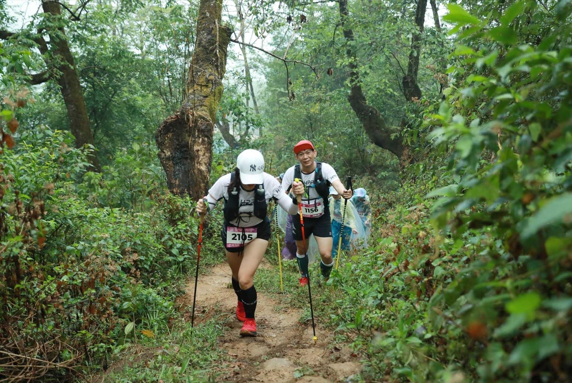 Hơn 300 vận động viên xuất phát từ bản Sin Suối Hồ hướng lên đỉnh Tả Liên Sơn và để chinh phục đỉnh núi ở độ cao 2.996m các vận động viên được trải nghiệm đi qua những cánh rừng nguyên sinh. Ảnh: Quý Trung – TTXVN
