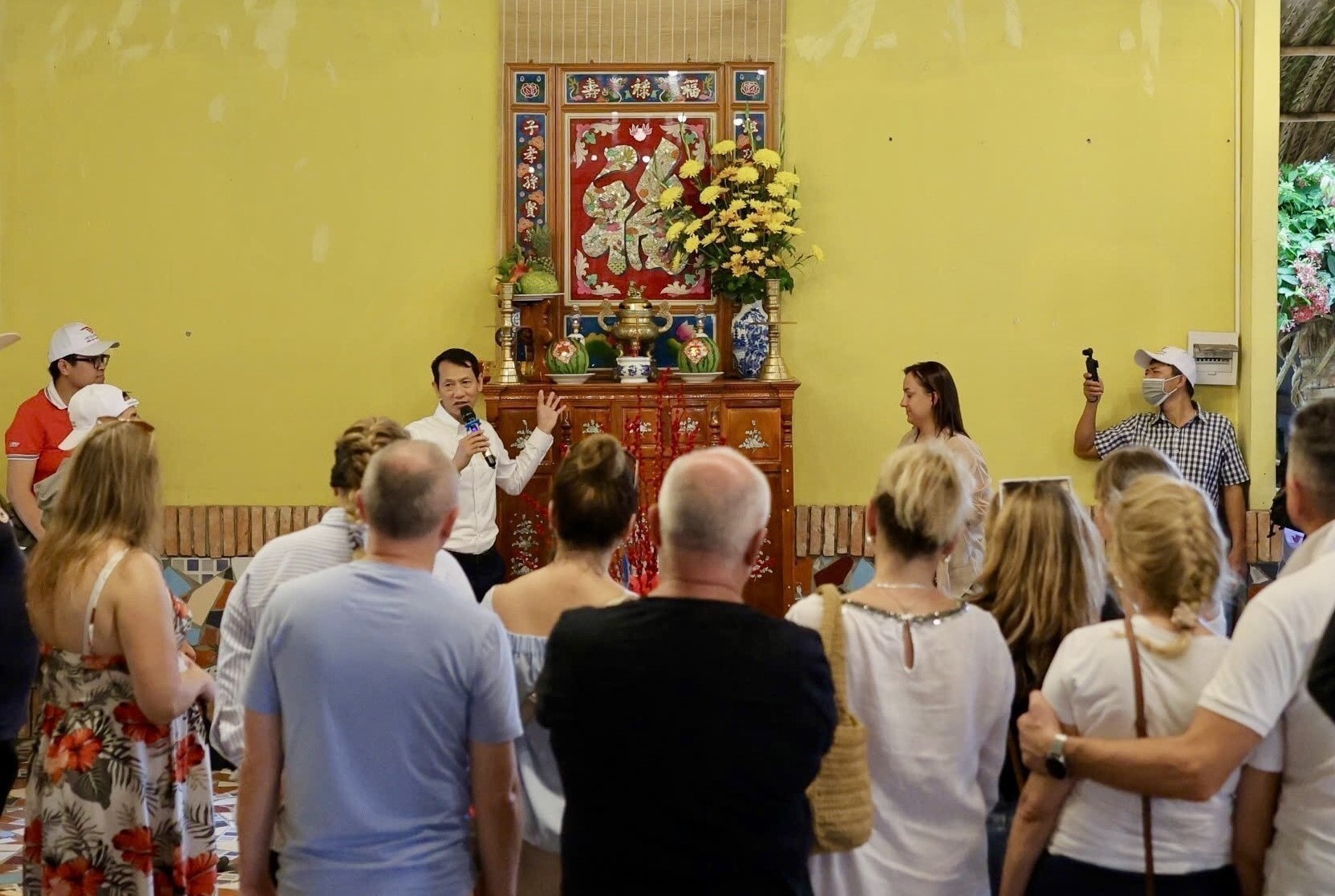 Khách nước ngoài tham gia tour "Người Tây ăn Tết miền Tây" của doanh nghiệp Thành phố Hồ Chí Minh. Ảnh: Mỹ Phương/TTXVN