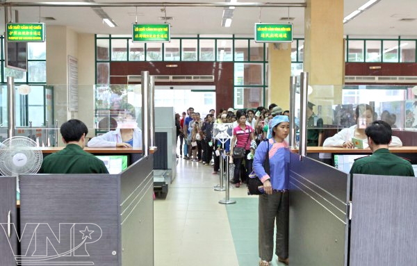 Đoàn khách làm thủ tục xuất cảnh sang Trung Quốc. Ảnh: Tất Sơn.