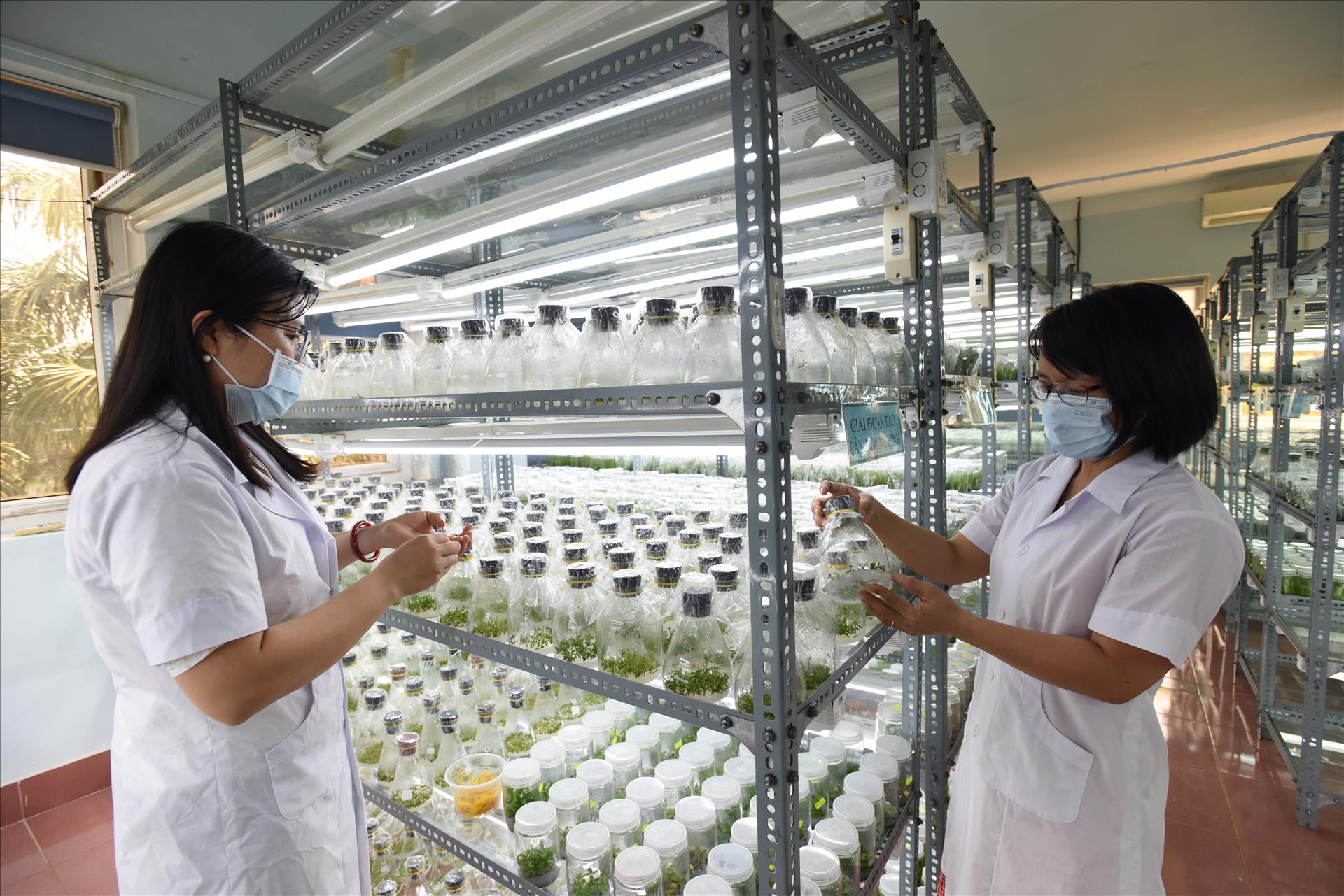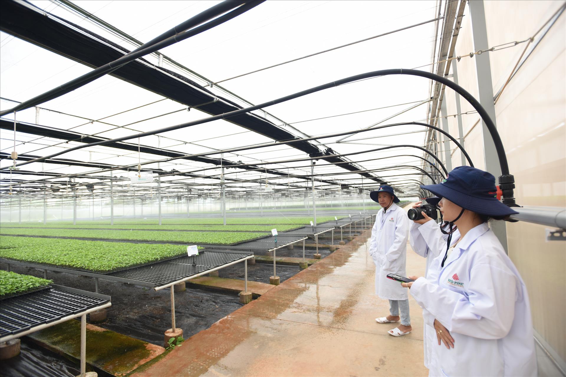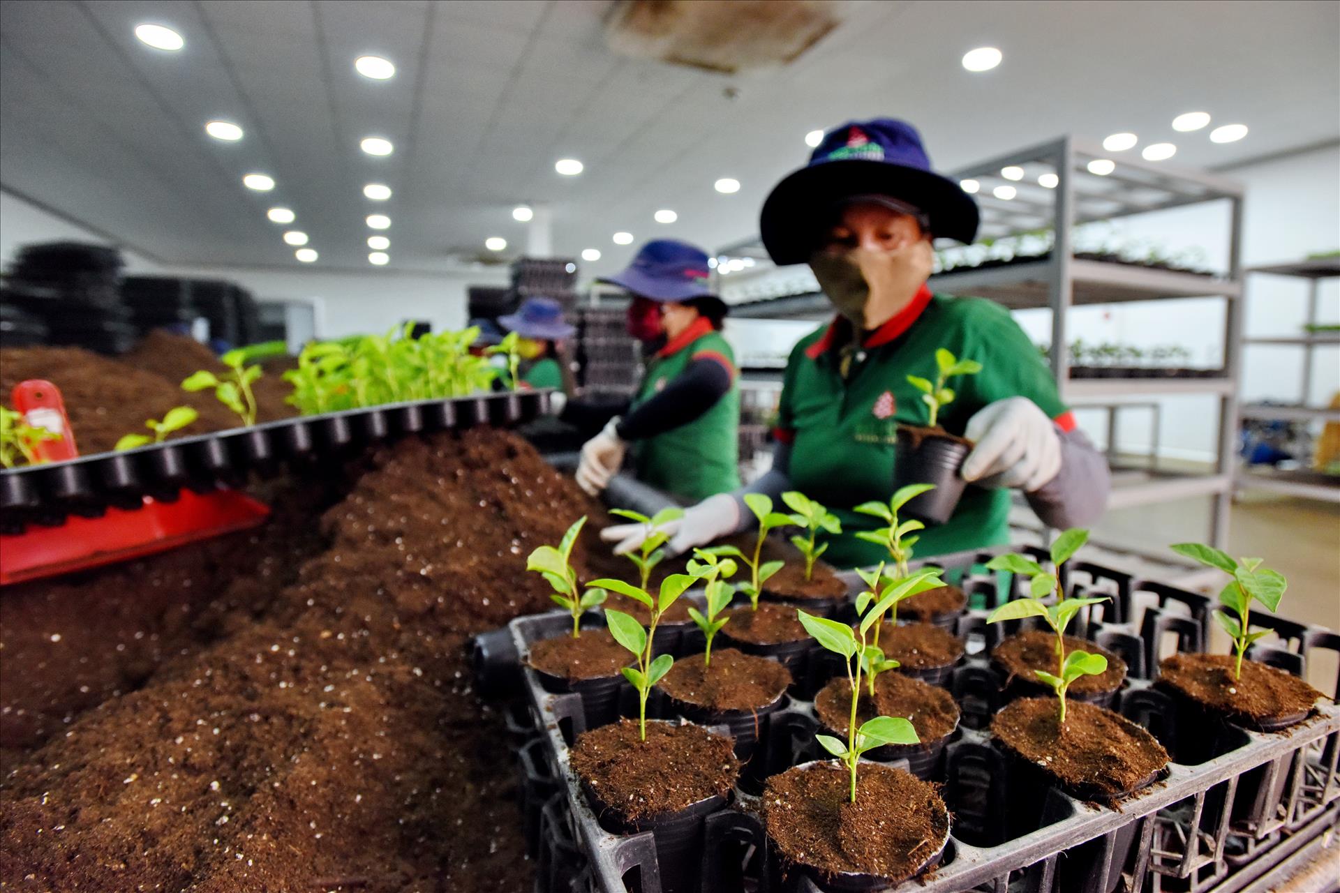 Dây chuyền sản xuất cây giống chất lượng cao được tự động hóa hoàn toàn từ kiểm soát ánh sáng, nhiệt độ, độ ẩm, dinh dưỡng... của Cty Red Pine ở Gia Lai. Ảnh: Thanh Hòa/Báo ảnh Việt Nam