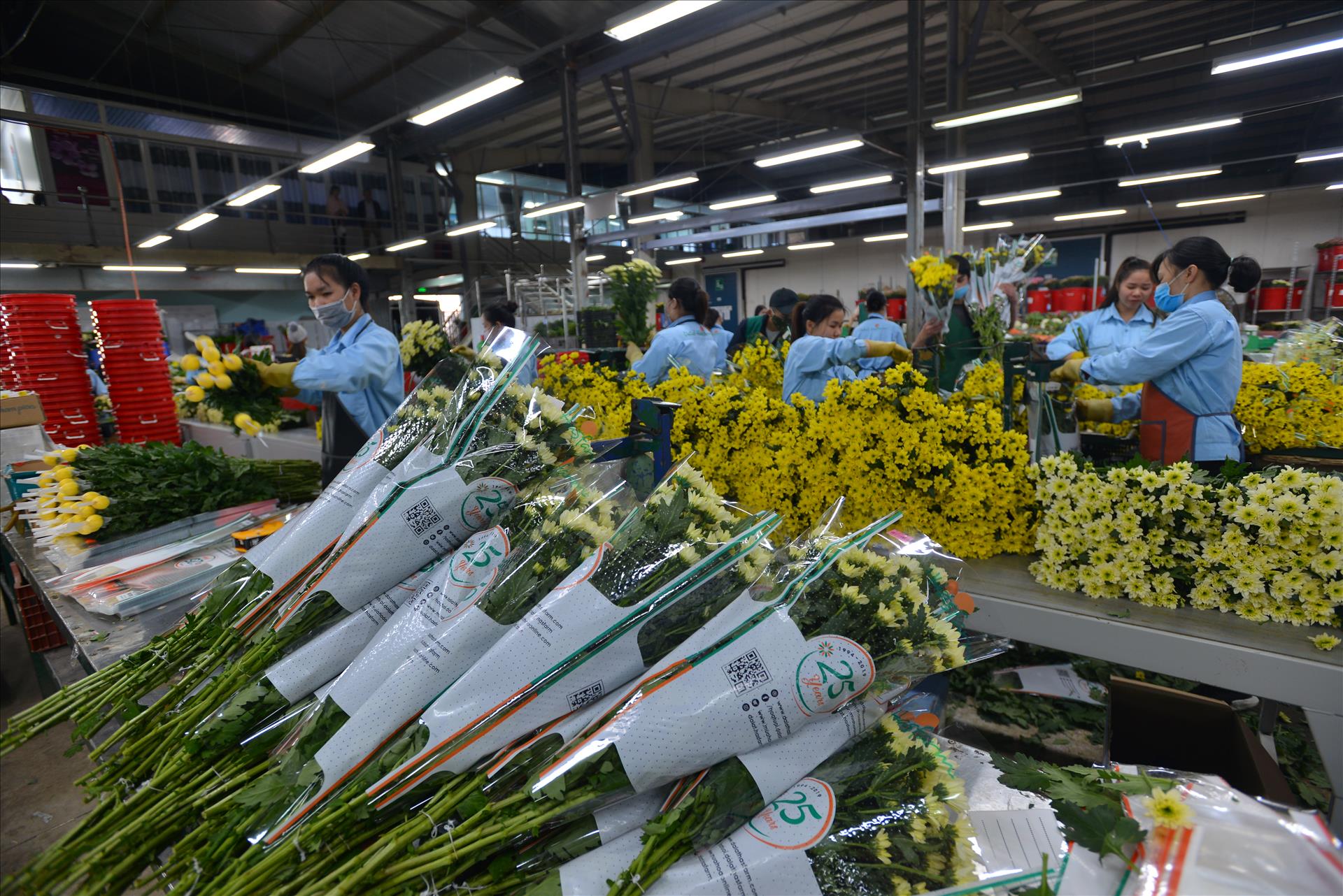 Sản phẩm hoa tươi xuất khẩu được gắn nhãn QR truy xuất nguồn gốc. Ảnh: Thanh Hòa/Báo ảnh Việt Nam