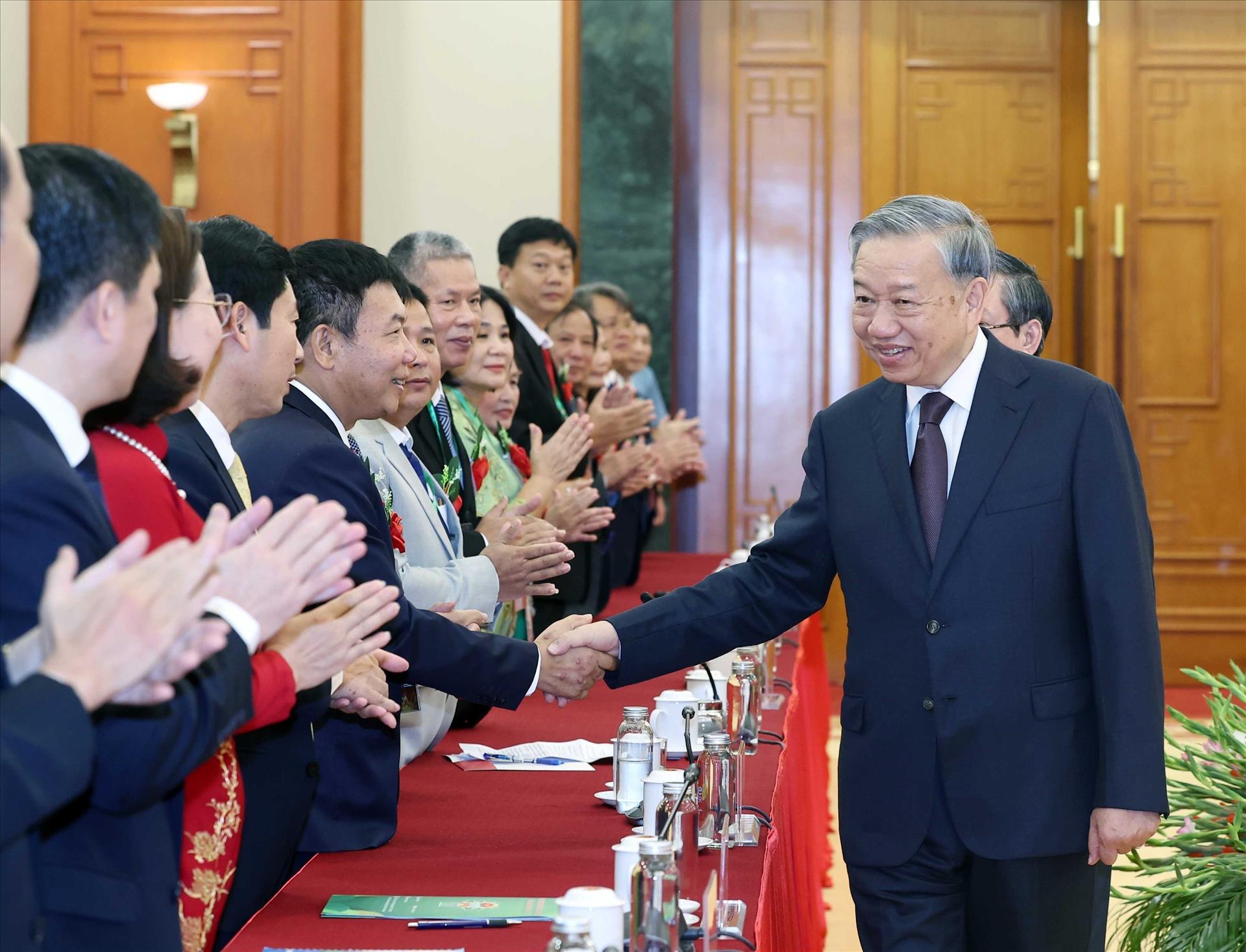 Tổng Bí thư, Chủ tịch nước Tô Lâm với nông dân xuất sắc và các nhà khoa học nông nghiệp Việt Nam tiêu biểu. Ảnh: Thông Nhất - TTXVN