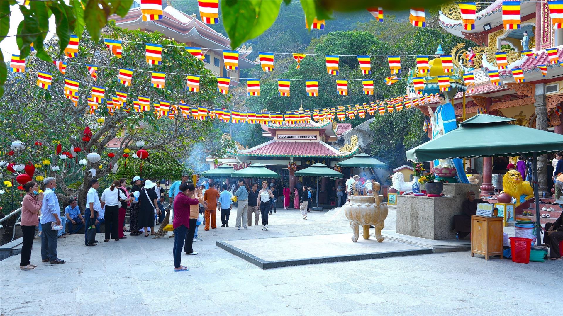 Du khách hành hương tại Linh Sơn Tiên Thạch Tự. Ảnh: Minh Phú - TTXVN