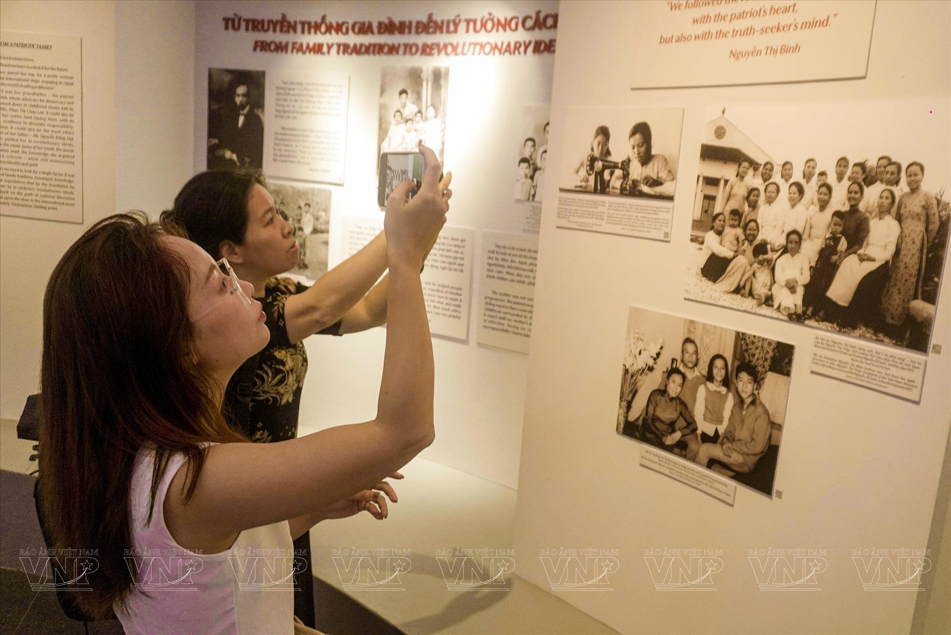 Không gian trưng bày được bố cục theo 4 chủ đề, dẫn dắt người xem đi trọn hành trình cuộc đời và sự nghiệp của bà Nguyễn Thị Bình.