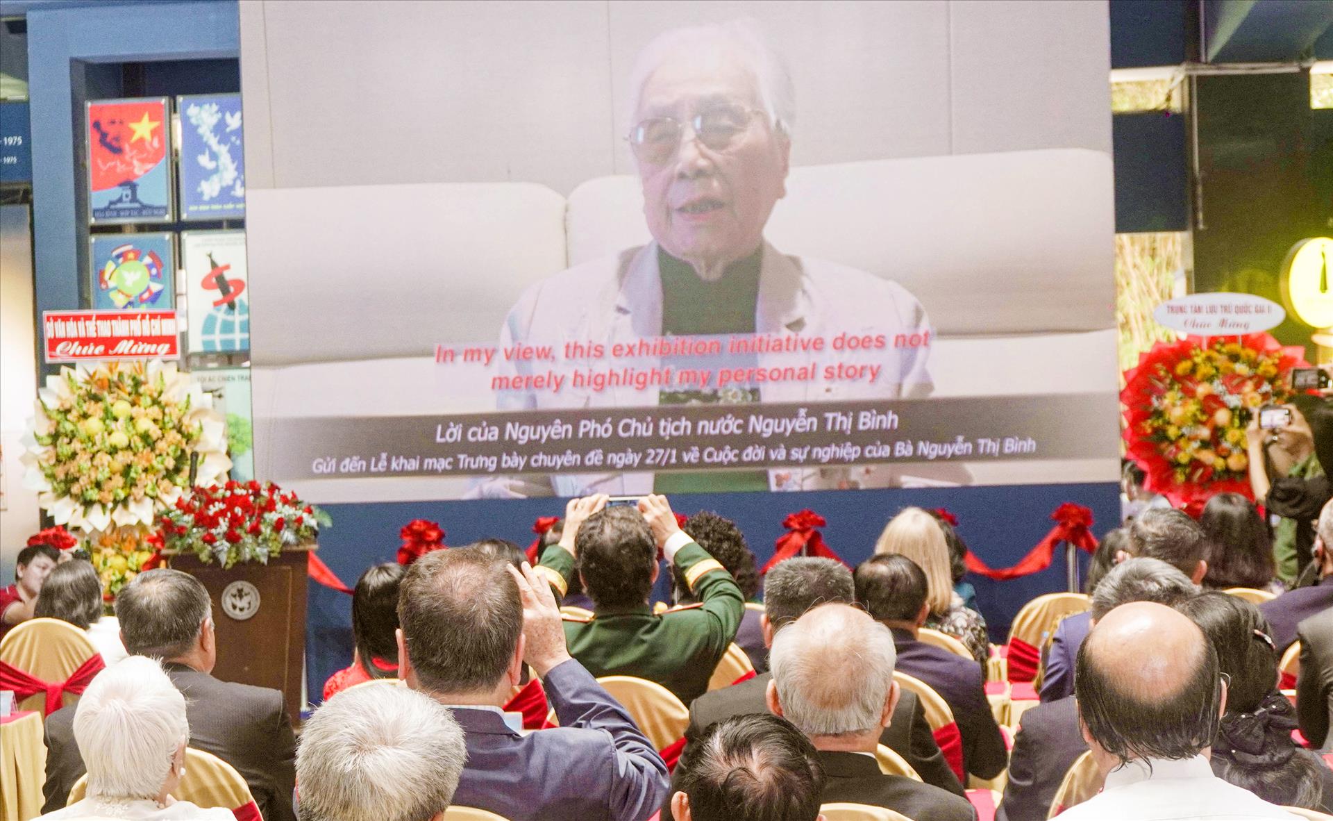Video về lời của nguyên Phó Chủ tịch nước Nguyễn Thị Bình gửi đến Lễ khai mạc Trưng bày chuyên đề vào sáng 27/01 chia sẻ cảm xúc về sự kiện này. Ảnh: Sơn Nghĩa/Báo ảnh Việt Nam