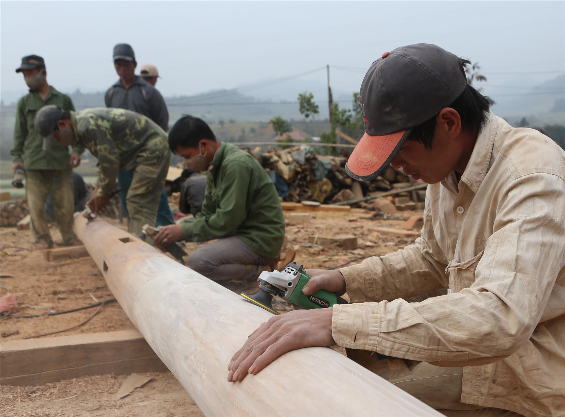 Thông thường, để dựng được một nhà sàn năm gian với diện tích khoảng 50 mét vuông, người Thái phải tích trữ gỗ khoảng 10 năm. Trong thời gian đó, khi gia chủ chọn được những thân gỗ phù hợp để làm cột, xà, dui, mè thì sẽ nhờ thợ mộc đến làm trước. Vào dịp cuối năm, khi chọn được ngày tốt, gia chủ sẽ mời họ hàng, dân bàn đến dựng giúp trong vòng một tuần là hoàn thành ngôi nhà.