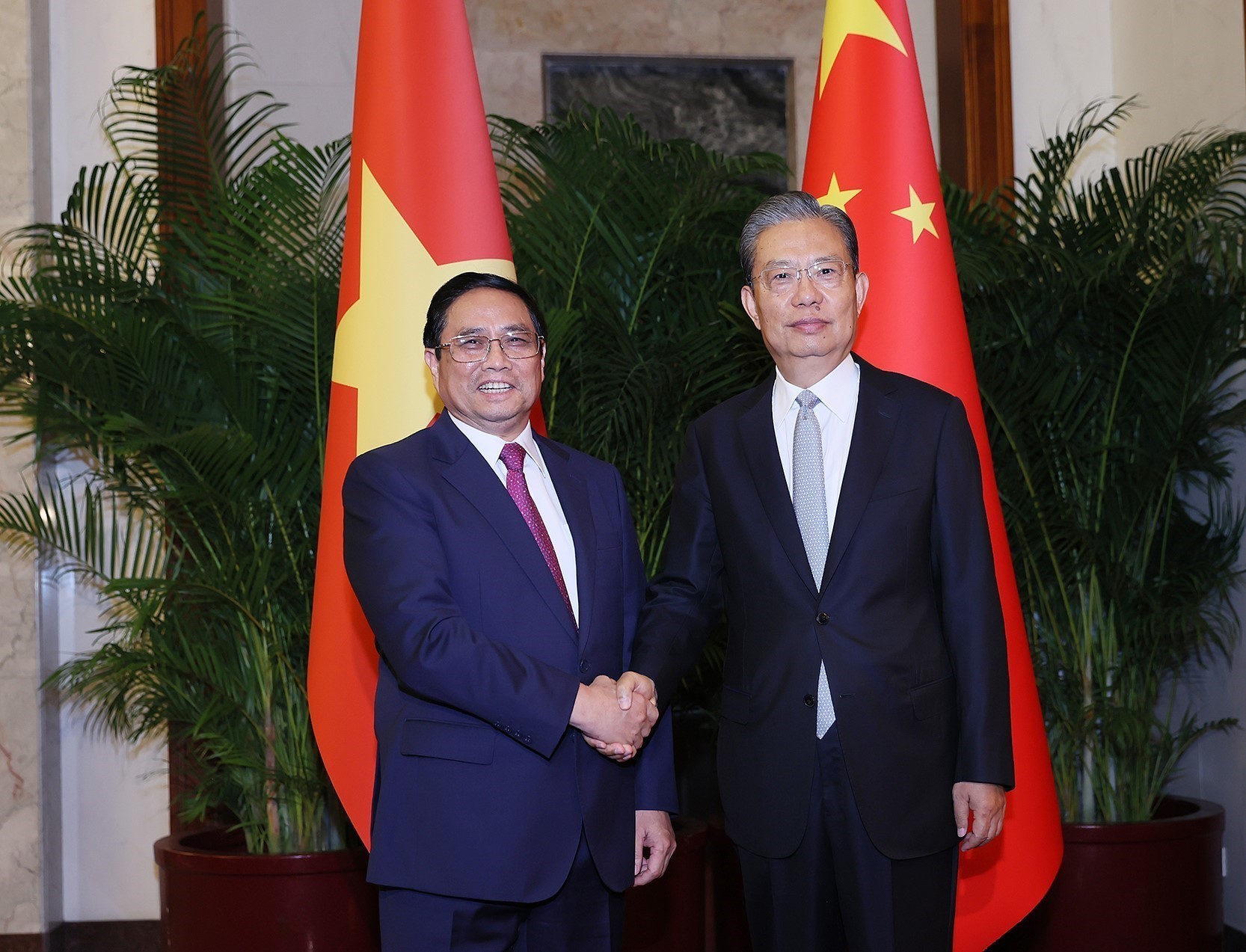 Tại các cuộc hội đàm, hội kiến, Thủ tướng Chính phủ Phạm Minh Chính đều khẳng định Đảng, Nhà nước và nhân dân Việt Nam nhất quán coi trọng việc phát triển mối quan hệ tốt đẹp với Đảng, Chính phủ và Nhân dân Trung Quốc; khẳng định đây là chủ trương nhất quán, là lựa chọn chiến lược và ưu tiên hàng đầu trong đường lối đối ngoại độc lập, tự chủ, đa phương hóa, đa dạng hóa của Việt Nam.