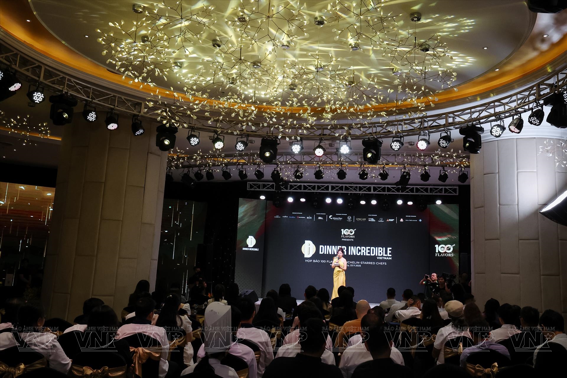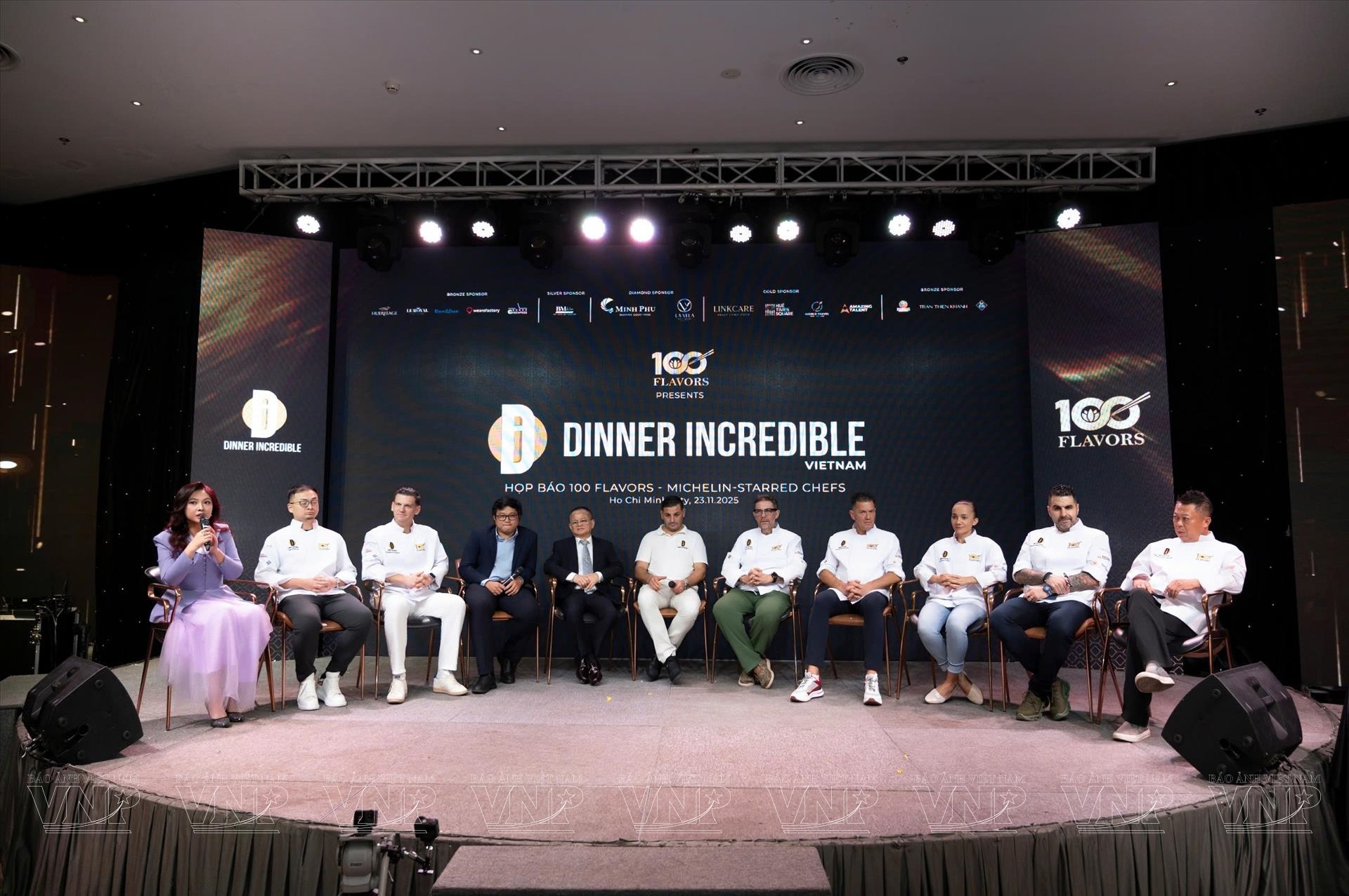 Đại diện ban tổ chức, bà Kim Thanh Thảo - Giám đốc chương trình, cho biết Tuần lễ Ẩm thực “100 Flavors - Michelin-Starred Chef” là sự hợp tác chiến lược giữa 100 Flavors và Dinner Incredible Vietnam 2025. Mục tiêu dài hạn là đưa Việt Nam trở thành điểm đến hàng đầu của dòng ẩm thực haute cuisine - nơi những trải nghiệm sang trọng bậc nhất châu Á được định hình.