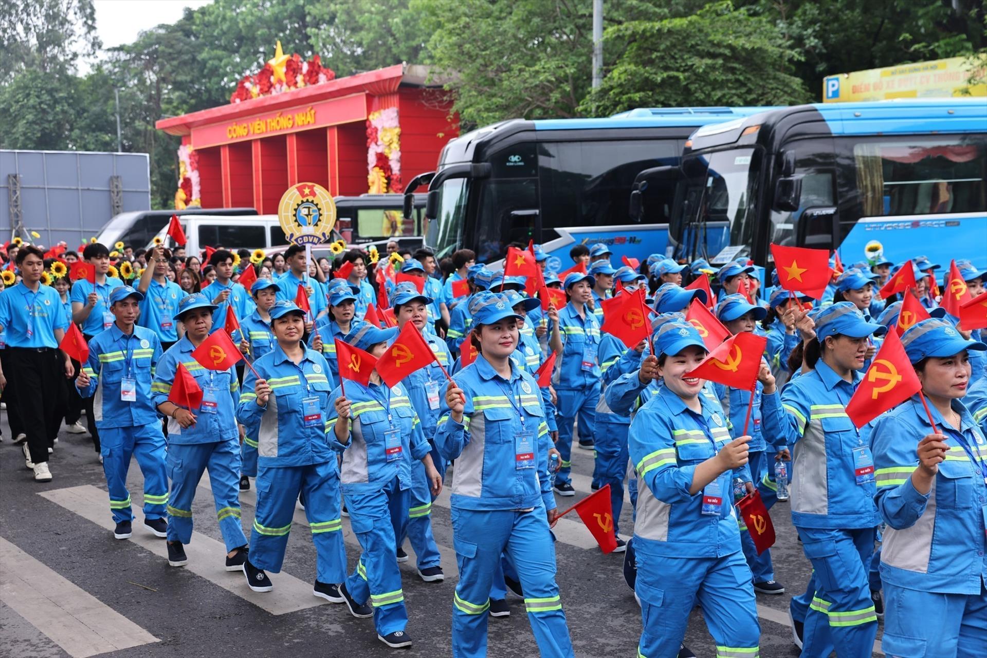 Đoàn diễu hành xuất phát lúc 8 giờ từ tuyến đường Trần Nhân Tông - Trần Bình Trọng về Cung Văn hóa Lao động Hữu nghị Việt - Xô. Lực lượng tham gia diễu hành là đoàn viên công đoàn, công nhân, lao động tiêu biểu đến từ nhiều ngành, lĩnh vực khác nhau. Các khối diễu hành thể hiện tinh thần đoàn kết, kỷ luật, sáng tạo và khát vọng vươn lên của người lao động trong thời kỳ mới.