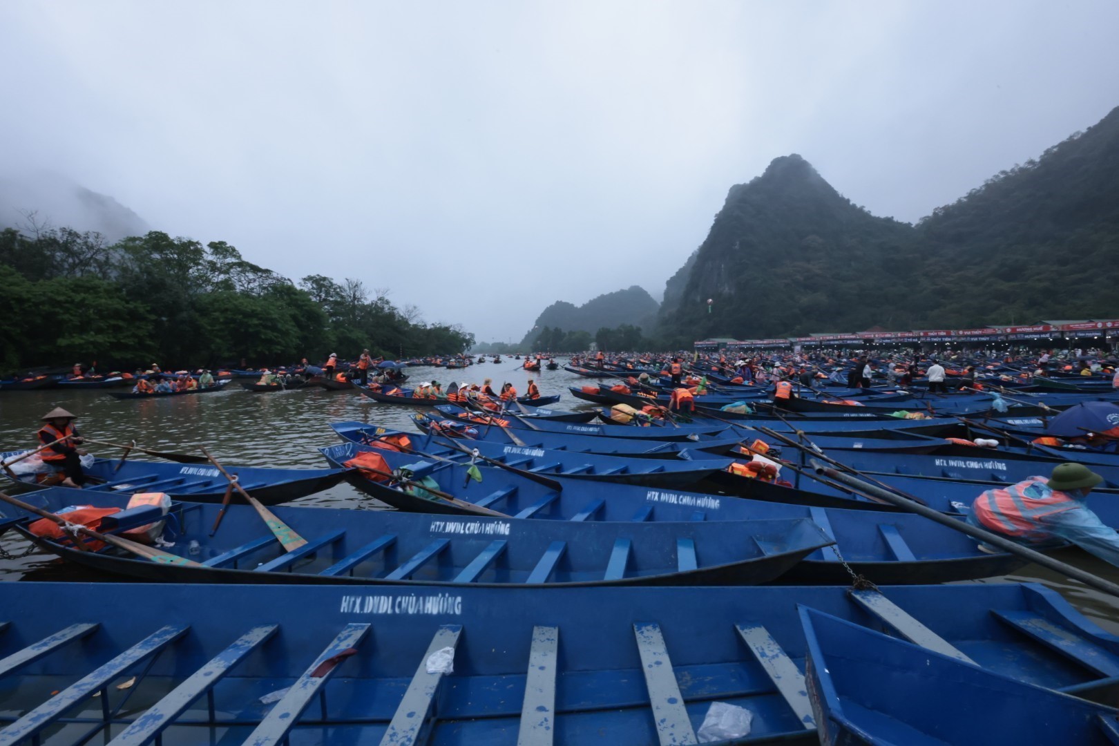 Hàng vạn chiếc đò phục vụ du khách đến Chùa Hương. Ảnh: Trần Việt/TTXVN