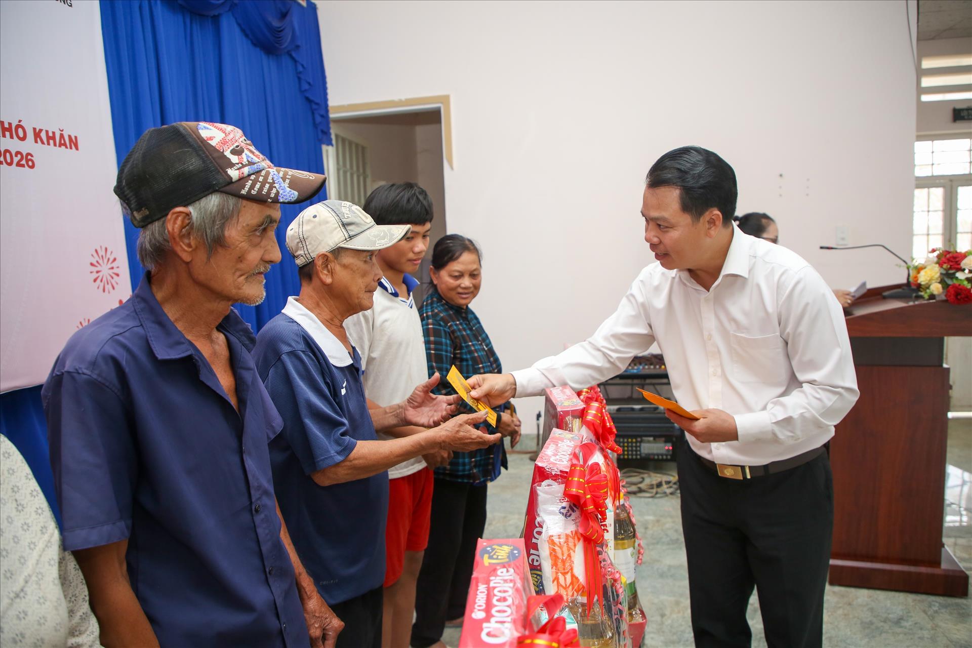 Ở giữa sân UBND xã Hòa Hội, tiếng cười trẻ nhỏ vang lên rộn ràng. Những phần quà Tết gồm bánh kẹo, đồ dùng thiết yếu tuy không lớn nhưng đủ để bà con cảm nhận sự ấm áp, nâng niu một niềm vui đầu năm.