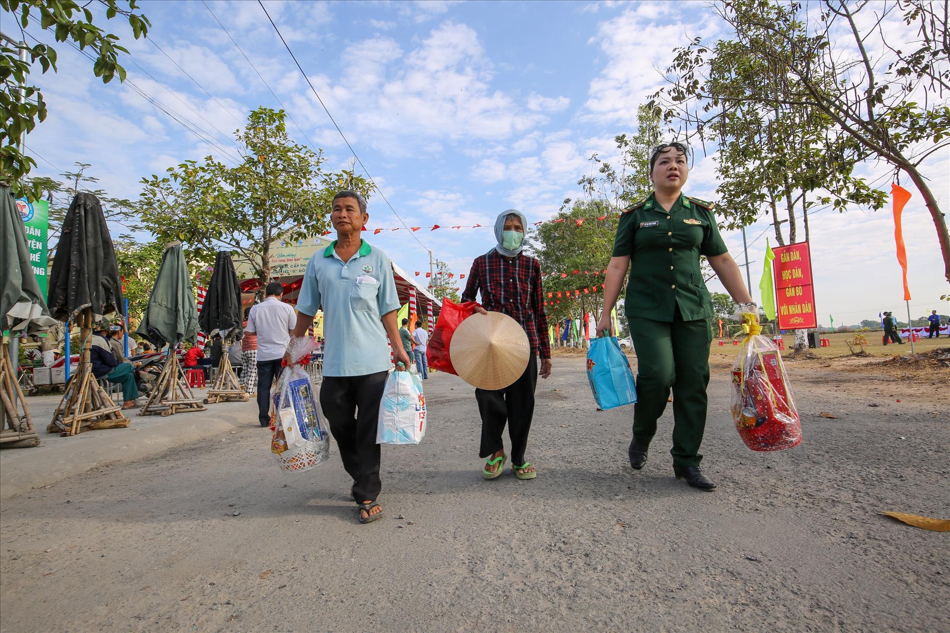 Bà Lê Thị Kim (58 tuổi, ngụ ấp Cây Ổi, xã Hòa Hội) xúc động nói: “Ở vùng biên xa xôi này, bà con còn cực lắm, nhất là mấy đứa nhỏ đi học thiếu đủ thứ. Nhưng may mắn, năm nào cũng vậy, bà con ở đây được mấy cô chú lãnh đạo tỉnh, địa phương, các doanh nghiệp và bộ đội biên phòng về tận nơi thăm hỏi, cho quà Tết. Gia đình nghèo, học sinh khó khăn ai cũng ấm lòng. Chỉ mong có thêm nguồn lo cho dân mình làm ăn đỡ khổ, cho con nít được đi học tới nơi tới chốn. Có vậy là bà con vui rồi”.