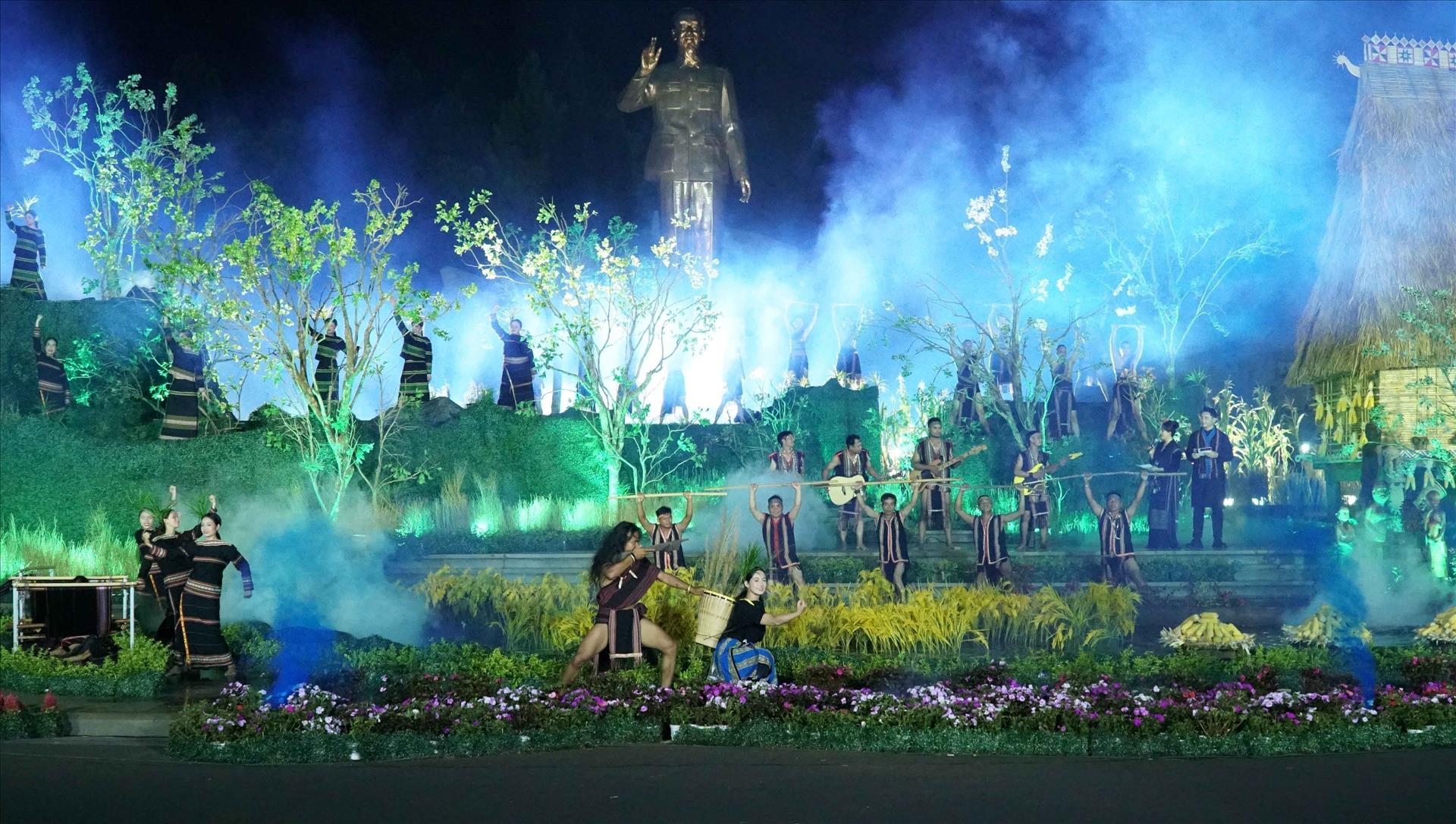 Không gian cồng chiêng Tây Nguyên được tái hiện trong chương trình, góp phần lan tỏa bản sắc văn hóa và tăng cường gắn kết cộng đồng. Ảnh: Hoài Nam - TTXVN