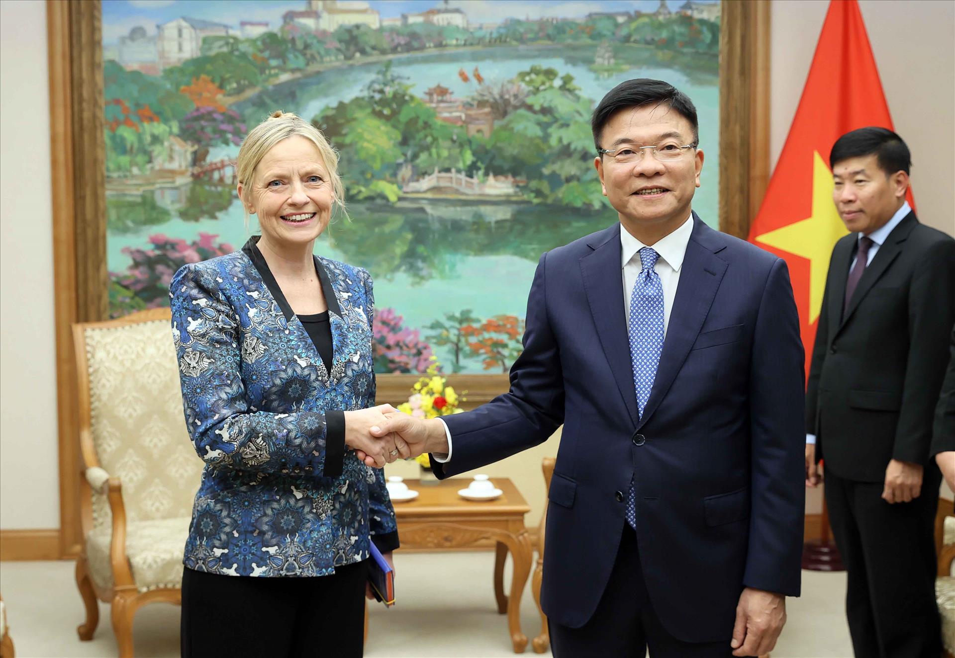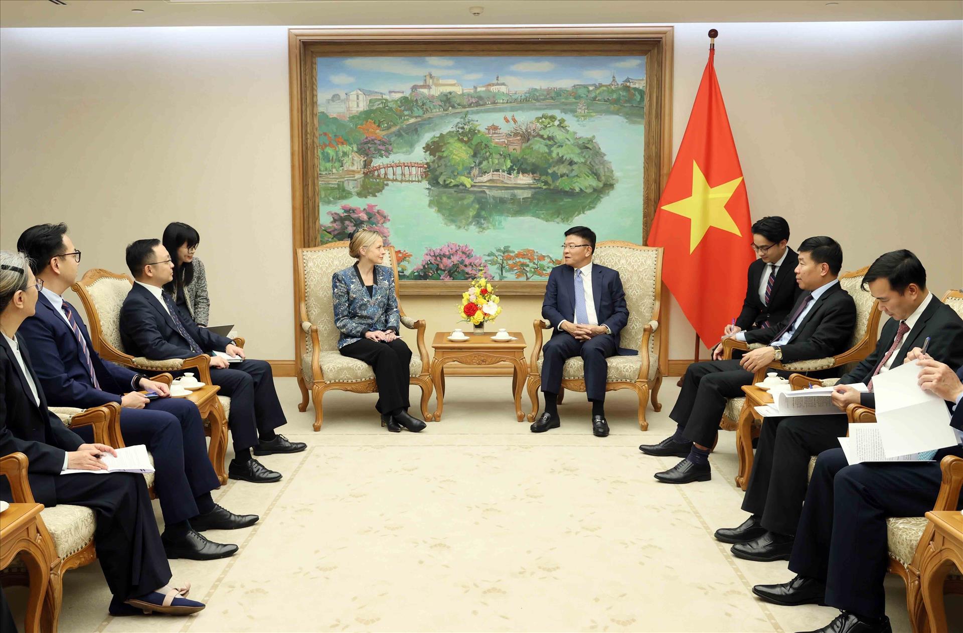 Phó Thủ tướng Lê Thành Long tiếp Phó Chủ tịch phụ trách chính sách công toàn cầu của Tập đoàn Amazon Susan Pointer. Ảnh: An Đăng - TTXVN