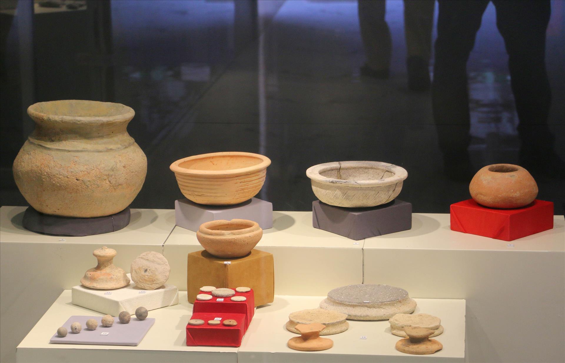 Các hiện vật khảo cổ của nền văn minh Óc Eo được trưng bày tại Nhà trưng bày Văn hoá Óc Eo phục vụ du lịch và nghiên cứu khoa học. Ảnh: Công Mạo-TTXVN