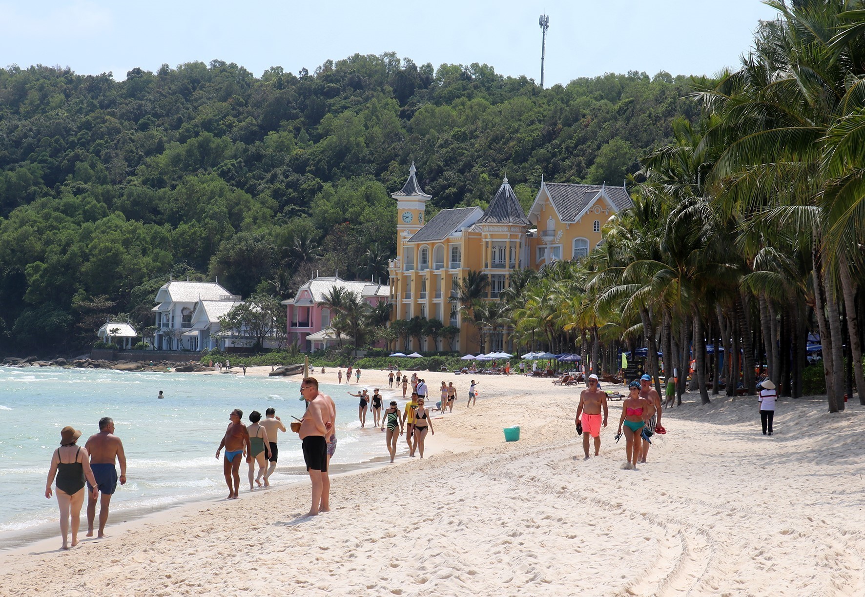 Du khách tại Bãi Khem ở phía Nam đảo Phú Quốc. Ảnh: Lê Huy Hải - TTXVN