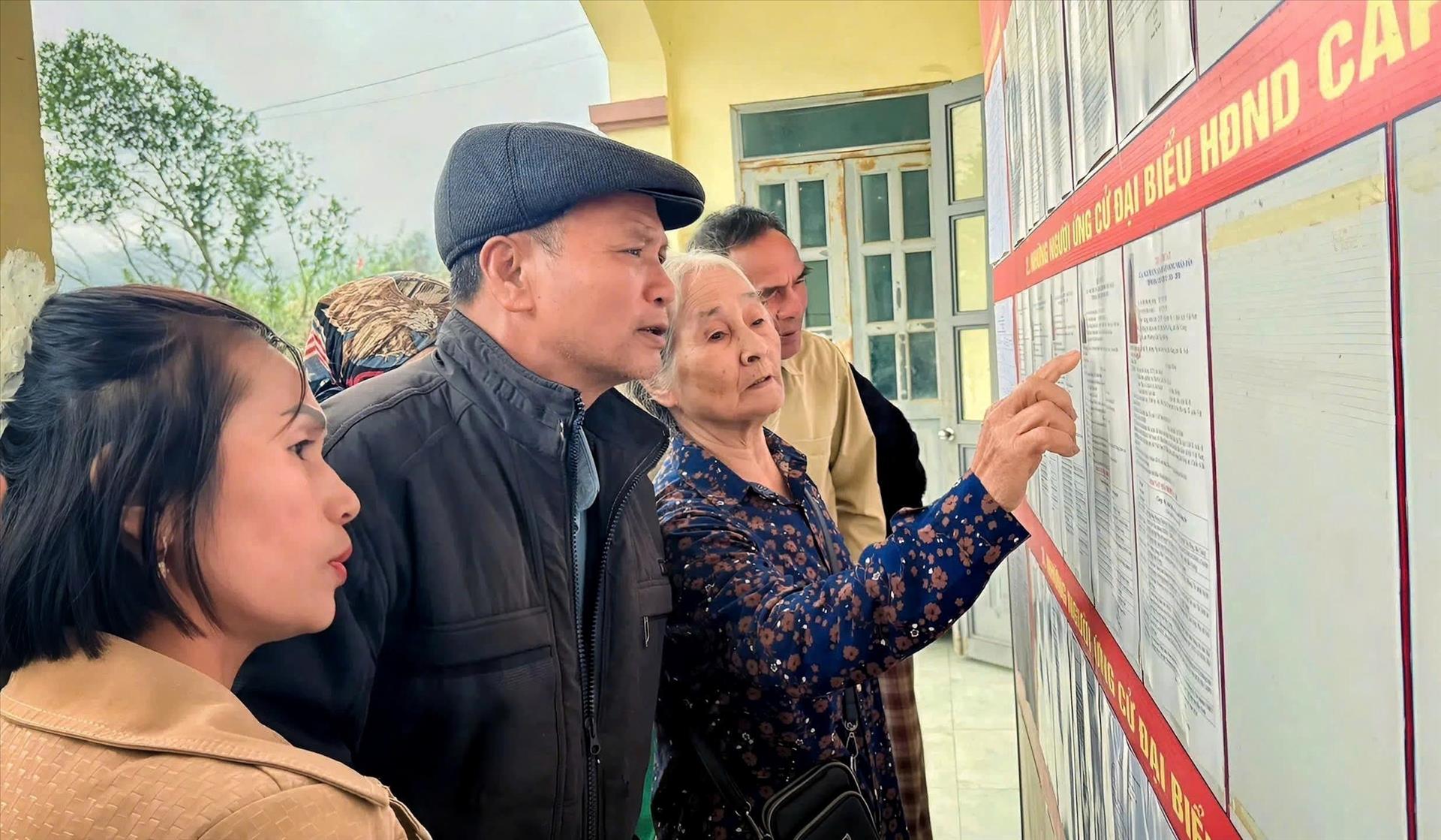 Người dân xã An Lạc tìm hiểu thông tin người ứng cử đại biểu Quốc hội khóa XVI và đại biểu Hội đồng Nhân dân, nhiệm kỳ 2026 - 2031. Ảnh: Danh Lam - TTXVN