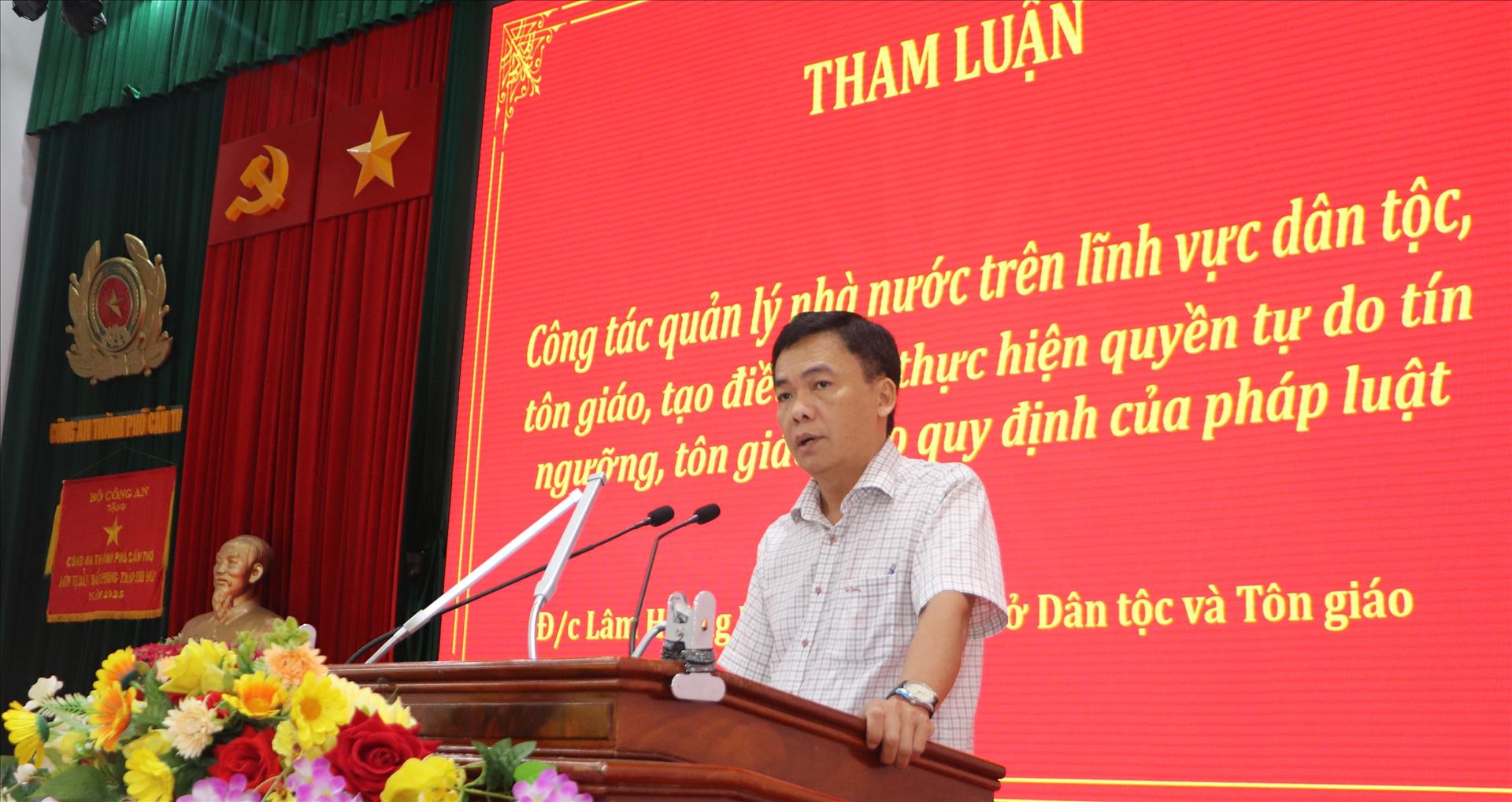 Ông Lâm Hoàng Mẫu, Giám đốc Sở Dân tộc và Tôn giáo thành phố, phát biểu. Ảnh: Hồng Thái - TTXVN