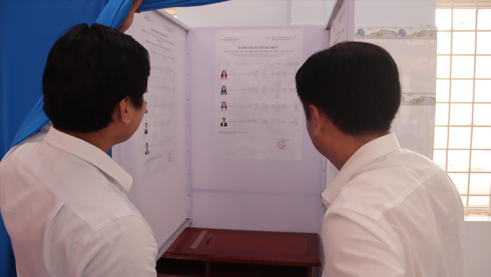 Các đại biểu tham quan phòng ghi phiếu tại điểm bầu cử. Ảnh: Huỳnh Sơn-TTXVN