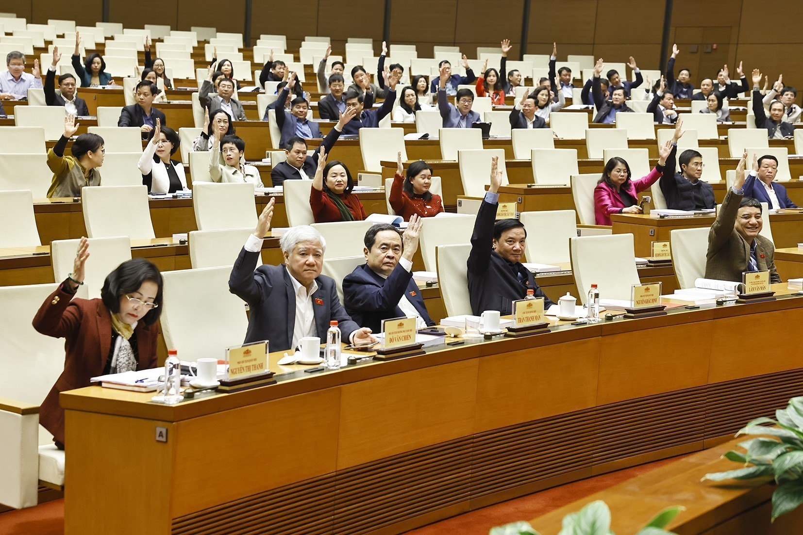 Chủ tịch Quốc hội Trần Thanh Mẫn và đại biểu biểu quyết. Ảnh: Doãn Tấn - TTXVN