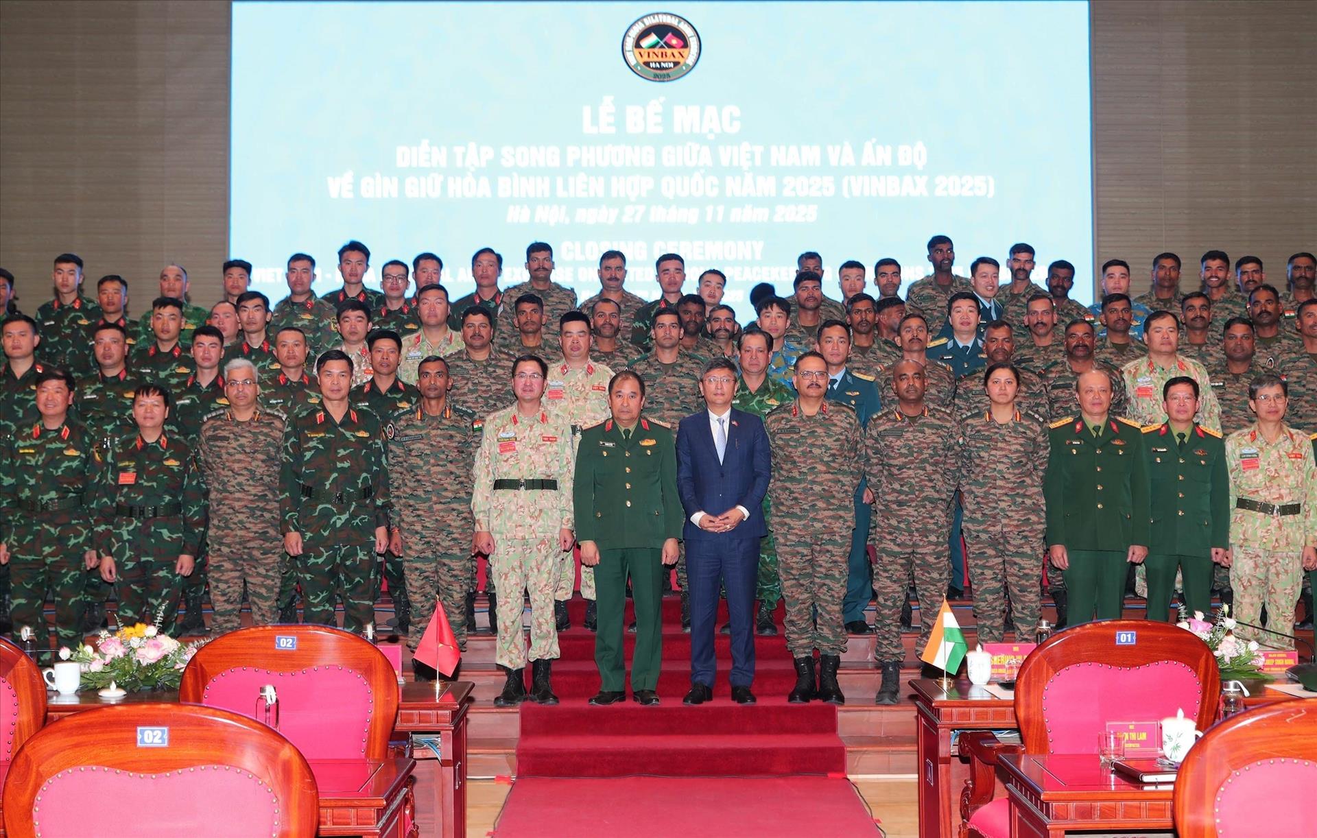 Sau gần 20 ngày làm việc với tinh thần trách nhiệm cao, Diễn tập song phương giữa Việt Nam và Ấn Độ về gìn giữ hòa bình Liên hợp quốc năm 2025 (VINBAX 2025) đã thành công tốt đẹp. Chiều 27/11, tại Trung tâm Huấn luyện quân sự quốc gia 4 (Hà Nội), Thượng tướng Phùng Sĩ Tấn, Phó Tổng Tham mưu trưởng Quân đội nhân dân Việt Nam, Phó Trưởng ban Chỉ đạo Bộ Quốc phòng về tham gia hoạt động gìn giữ hòa bình Liên hợp quốc chủ trì Lễ bế mạc VINBAX 2025.