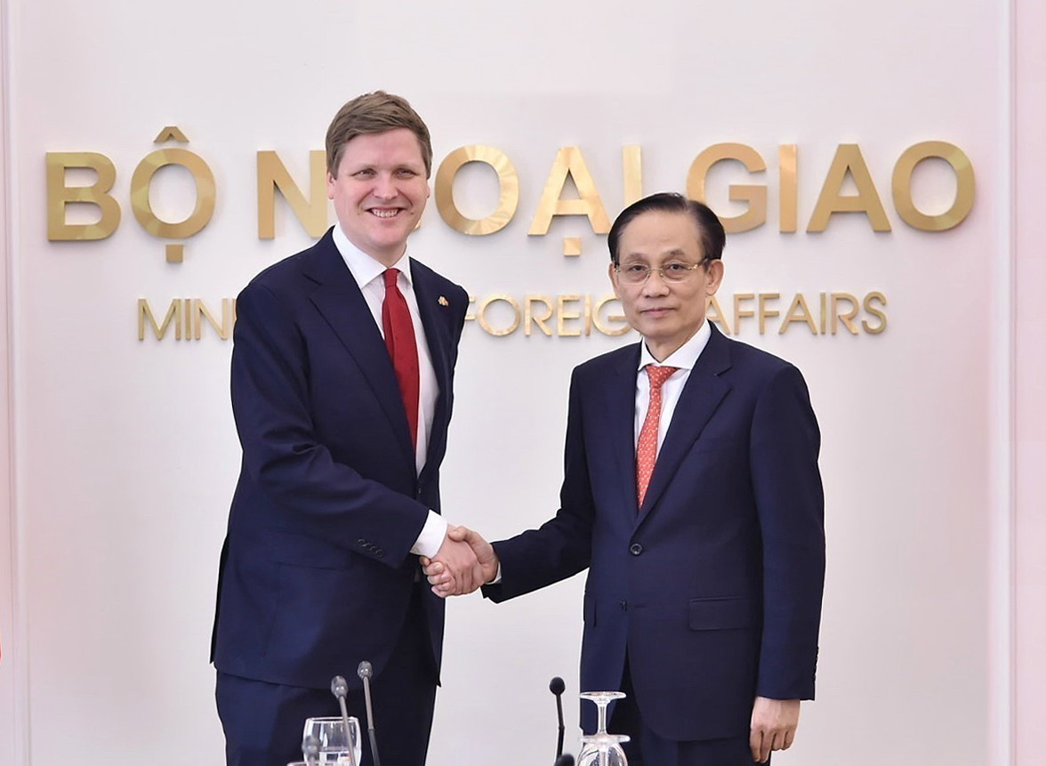 Bộ trưởng Ngoại giao Lê Hoài Trung tiếp Bộ trưởng Phát triển quốc tế Na Uy Åsmund Aukrust. Ảnh: TTXVN