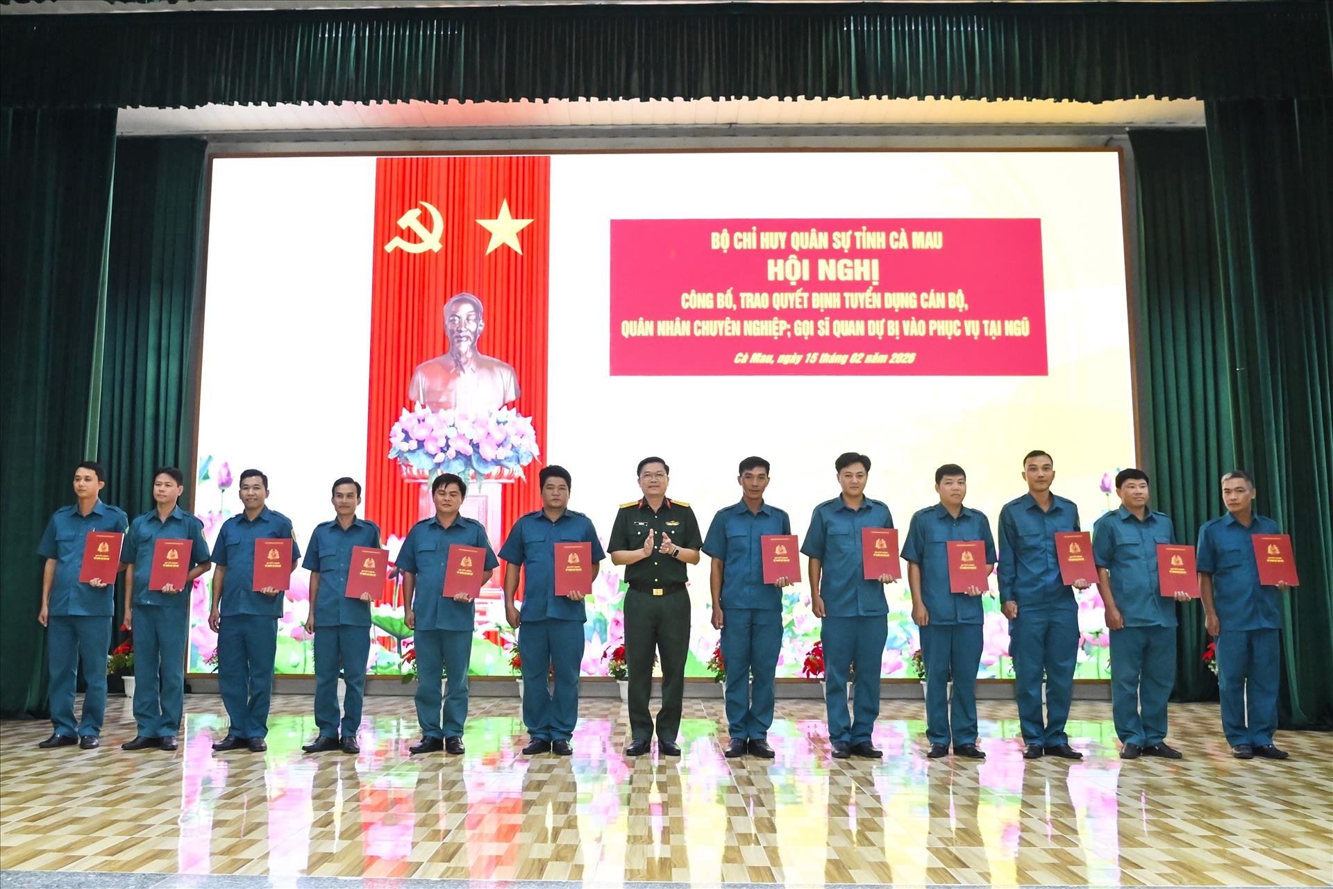 Ngày 15/2, Bộ Chỉ huy Quân sự tỉnh Cà Mau tổ chức Hội nghị công bố và trao quyết định tuyển dụng cán bộ, quân nhân chuyên nghiệp; gọi sĩ quan dự bị vào phục vụ tại ngũ.