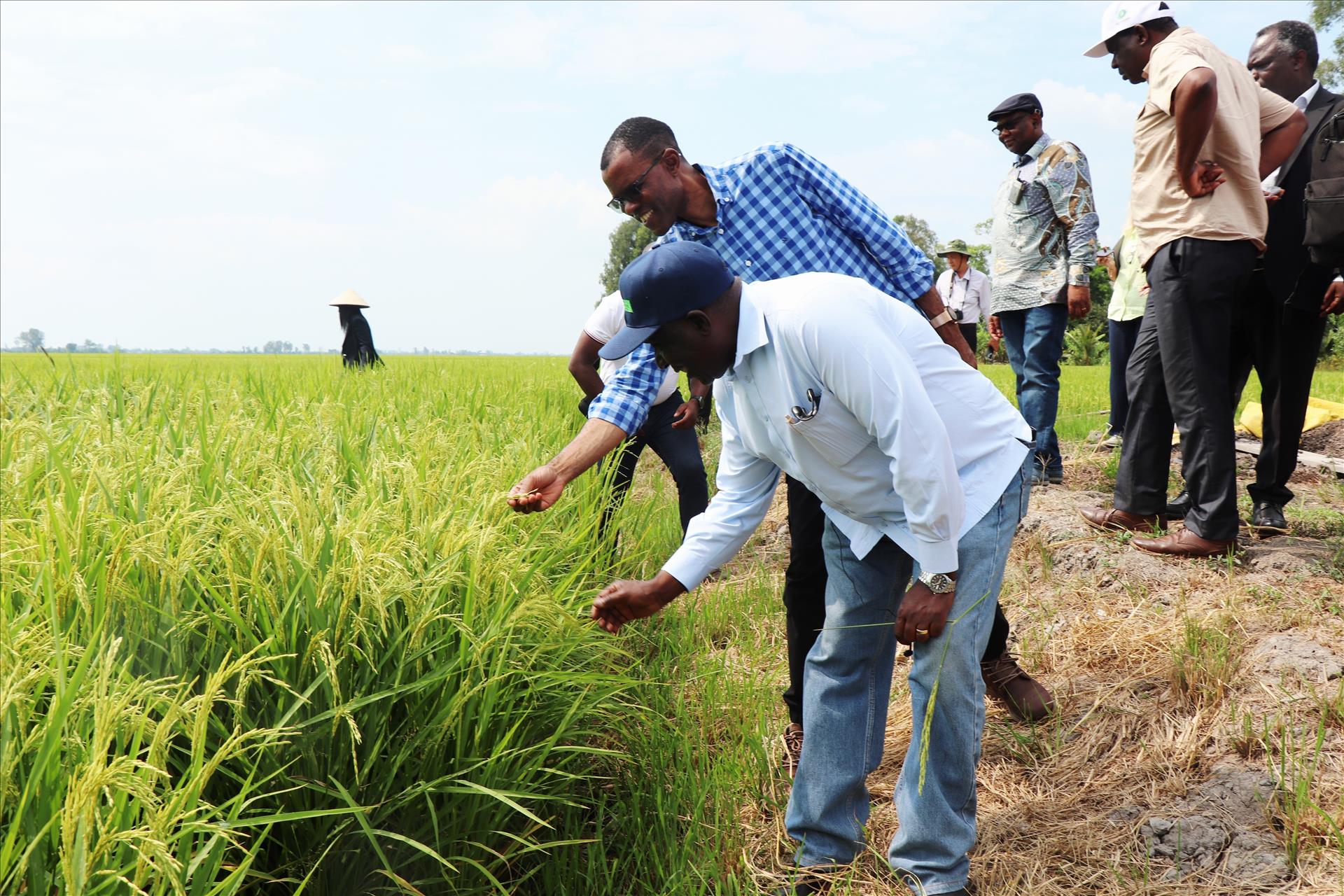 Chiều cùng ngày, Đoàn lãnh đạo Bộ Nông nghiệp và Bộ Tài chính - Kế hoạch quốc gia Zambia đã đến tham quan mô hình canh tác lúa tại Hợp tác xã Thịnh Phát và Hợp tác xã Tiến Thuận (xã Thạnh Quới). Đây là hai Hợp tác xã nằm trong vùng sản xuất lúa 3 vụ Bắc Cái Sắn (9.907 ha), có hạ tầng đê bao, trạm bơm điện và giao thông nội đồng thuận lợi.