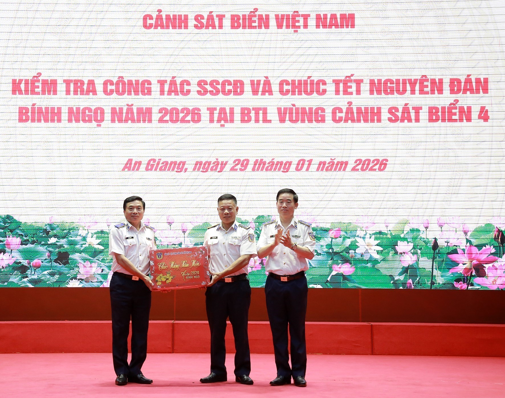 Chiều 29/1, tại đặc khu Phú Quốc, tỉnh An Giang, Đoàn công tác Cảnh sát biển Việt Nam do Trung tướng Bùi Quốc Oai, Bí thư Đảng ủy, Chính ủy Cảnh sát biển Việt Nam làm Trưởng đoàn đến kiểm tra công tác sẵn sàng chiến đấu và chuẩn bị Tết Nguyên đán Bính Ngọ 2026 của Bộ Tư lệnh Vùng Cảnh sát biển 4. Thiếu tướng Đào Bá Việt, Tư lệnh Vùng Cảnh sát biển 4 và các đồng chí trong Ban Thường vụ Đảng ủy, thủ trưởng Bộ Tư lệnh Vùng và chỉ huy các cơ quan, đơn vị đón tiếp và làm việc với đoàn.
