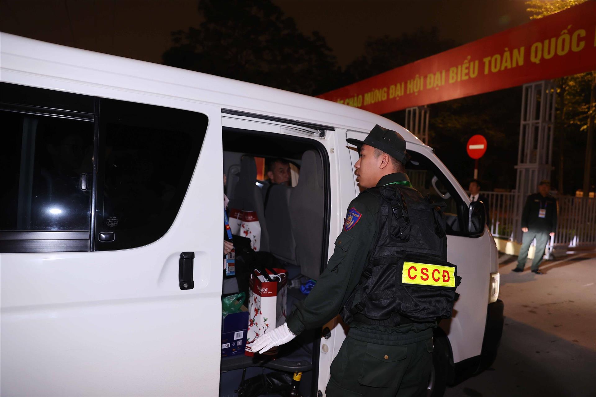 Lực lượng an ninh kiểm tra toàn bộ các phương tiện vào Trung tâm Hội nghị Quốc gia. Ảnh: TTXVN