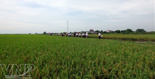 đánh giá kết quả mô hình cấy lúa bằng máy tại xã Đại Thắng, huyện Phú Xuyên.