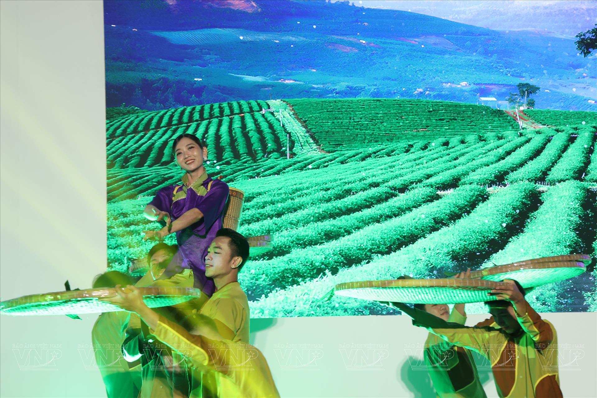Tiết mục nghệ thuật trình diễn giới thiệu hành trình và giá trị của cây chè Việt Nam. Ảnh: Lê Minh/ Báo ảnh Việt Nam