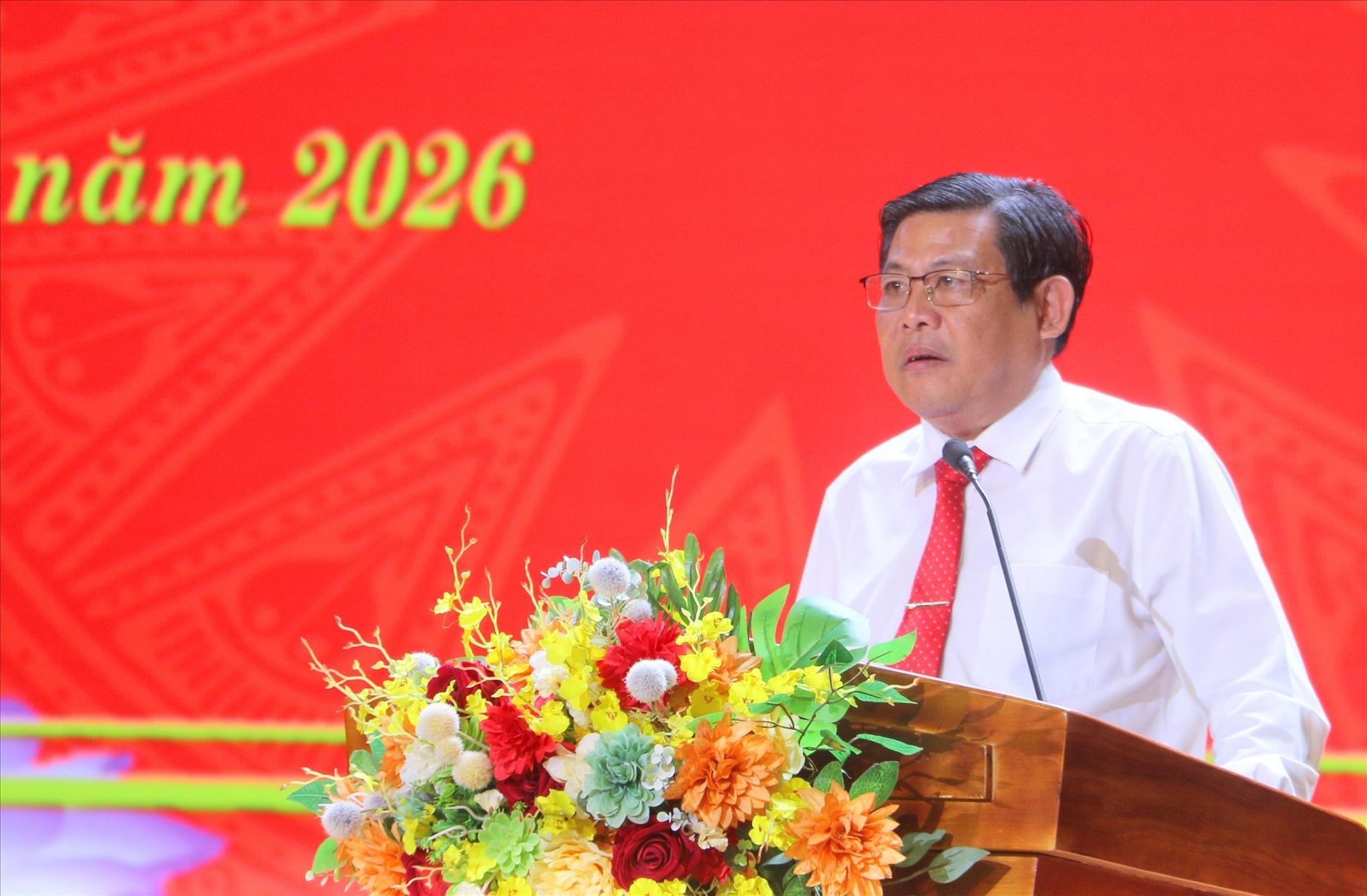 Phó Chủ tịch UBND tỉnh An Giang Ngô Công Thức phát biểu tại buổi họp mặt. Ảnh: Công Mạo-TTXVN