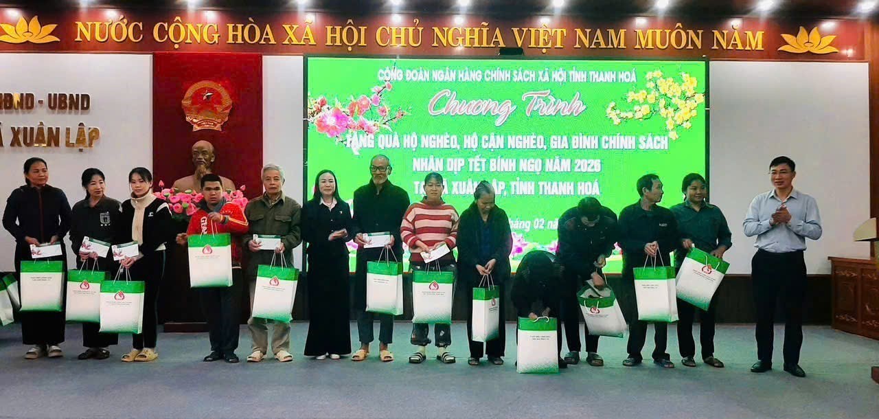 Theo đó, Công đoàn Ngân hàng Chính sách xã hội - Chi nhánh tỉnh Thanh Hóa đã trao hơn 600 suất quà Tết gồm tiền mặt và các nhu yếu phẩm đến hộ nghèo, hộ cận nghèo, hộ có hoàn cảnh khó khăn tại các địa phương trên địa bàn tỉnh. Tổng trị giá các phần quà là hơn 600 triệu đồng, đây là nguồn kinh phí do tập thể cán bộ, viên chức và người lao động trong toàn hệ thống đóng góp. Những phần quà có ý nghĩa thiết thực, thể hiện sự quan tâm của Ngân hàng Chính sách xã hội đối với đời sống của người dân, đặc biệt là các đối tượng yếu thế mỗi dịp Tết đến, Xuân về.