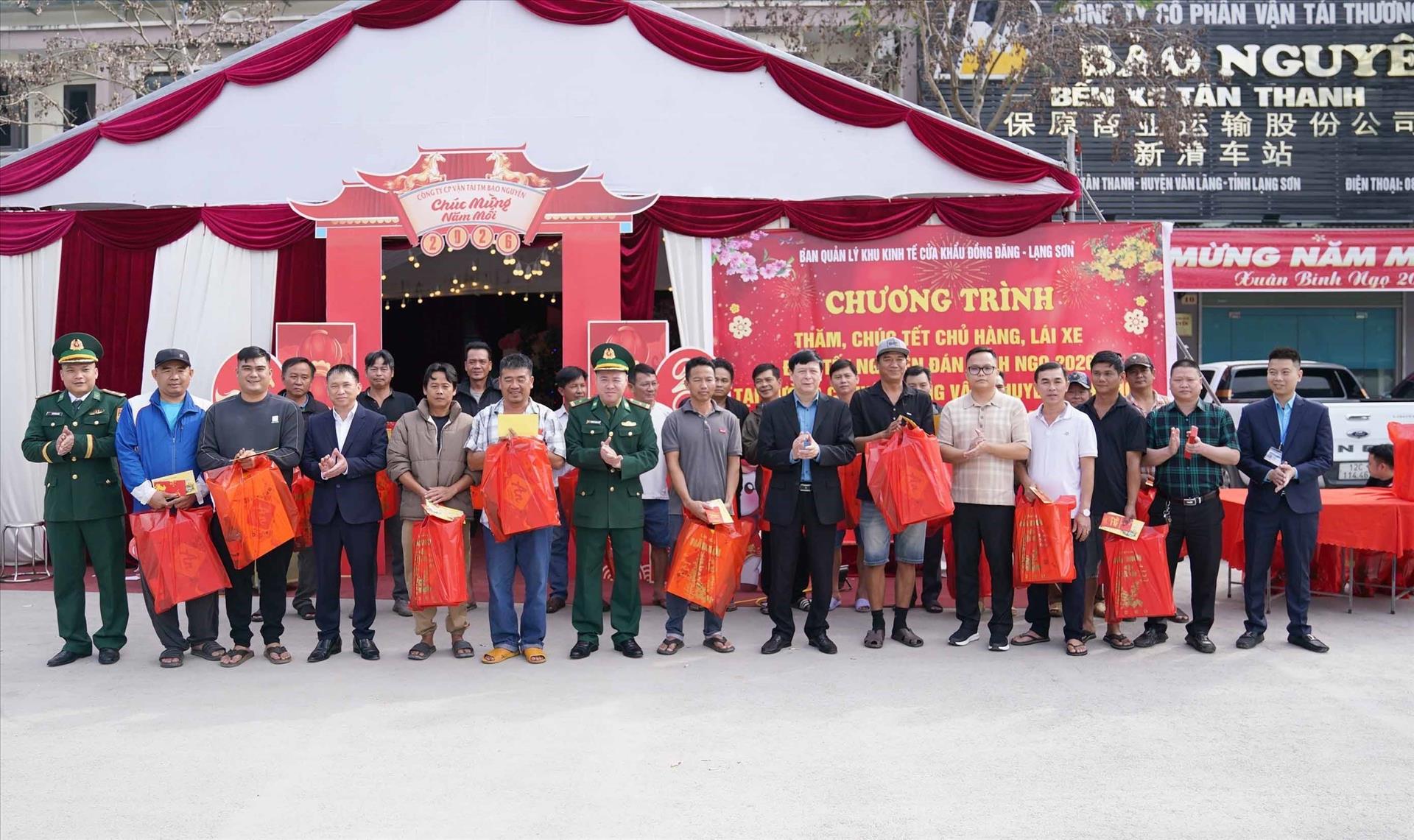 Ông Vũ Việt Hải, Phó trưởng Ban Quản lý Khu Kinh tế cửa khẩu Đồng Đăng - Lạng Sơn cho biết, đơn vị thăm, tặng quà và chúc Tết các chủ hàng, lái xe đường dài có phương tiện chở hàng hóa xuất khẩu đang đỗ, lưu trú tại khu vực cửa khẩu, đường chuyên dụng vận chuyển hàng hóa khu vực mốc 1088/2-1089 (Tân Thanh), lối thông quan khu vực mốc 1104-1105 (Cốc Nam) không kịp trở về địa phương, gia đình đón Tết. Mức hỗ trợ mỗi suất quà trị giá 800.000 đồng gồm quà và tiền mặt, với gần 100 suất quà. Đây là hoạt động thường niên của đơn vị, mong muốn các lái xe yên tâm, chấp hành tốt quy định của pháp luật, phối hợp cùng lực lượng chức năng trong công tác đảm bảo an ninh trật tự khu vực cửa khẩu.