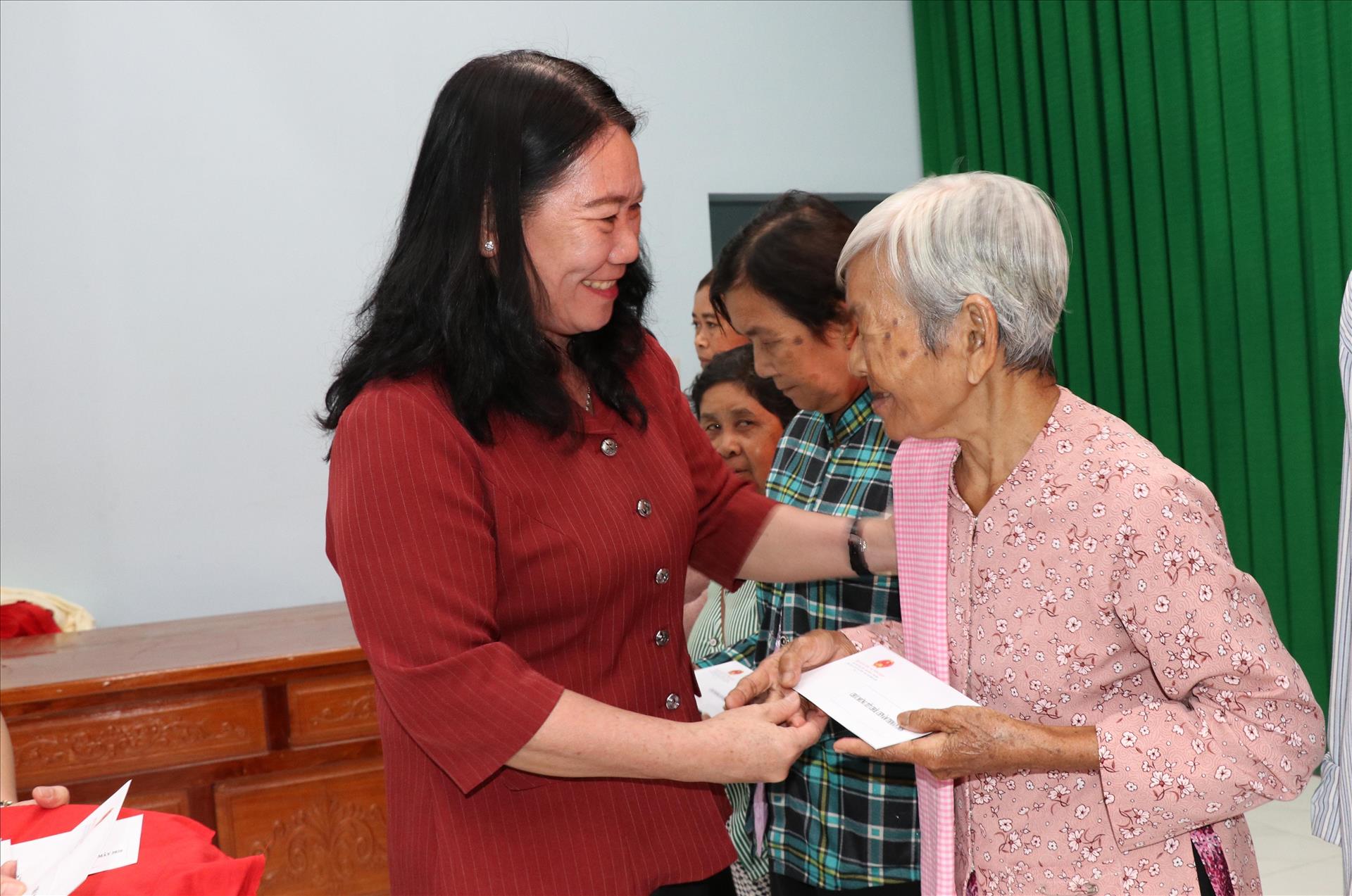 Phó Chủ tịch UBND tỉnh Vĩnh Long Nguyễn Thị Bé Mười tặng quà hộ đồng bào Khmer có hoàn cảnh khó khăn dịp Tết cổ truyền Chôl Chnăm Thmây năm 2026. Ảnh: Thanh Hòa - TTXVN