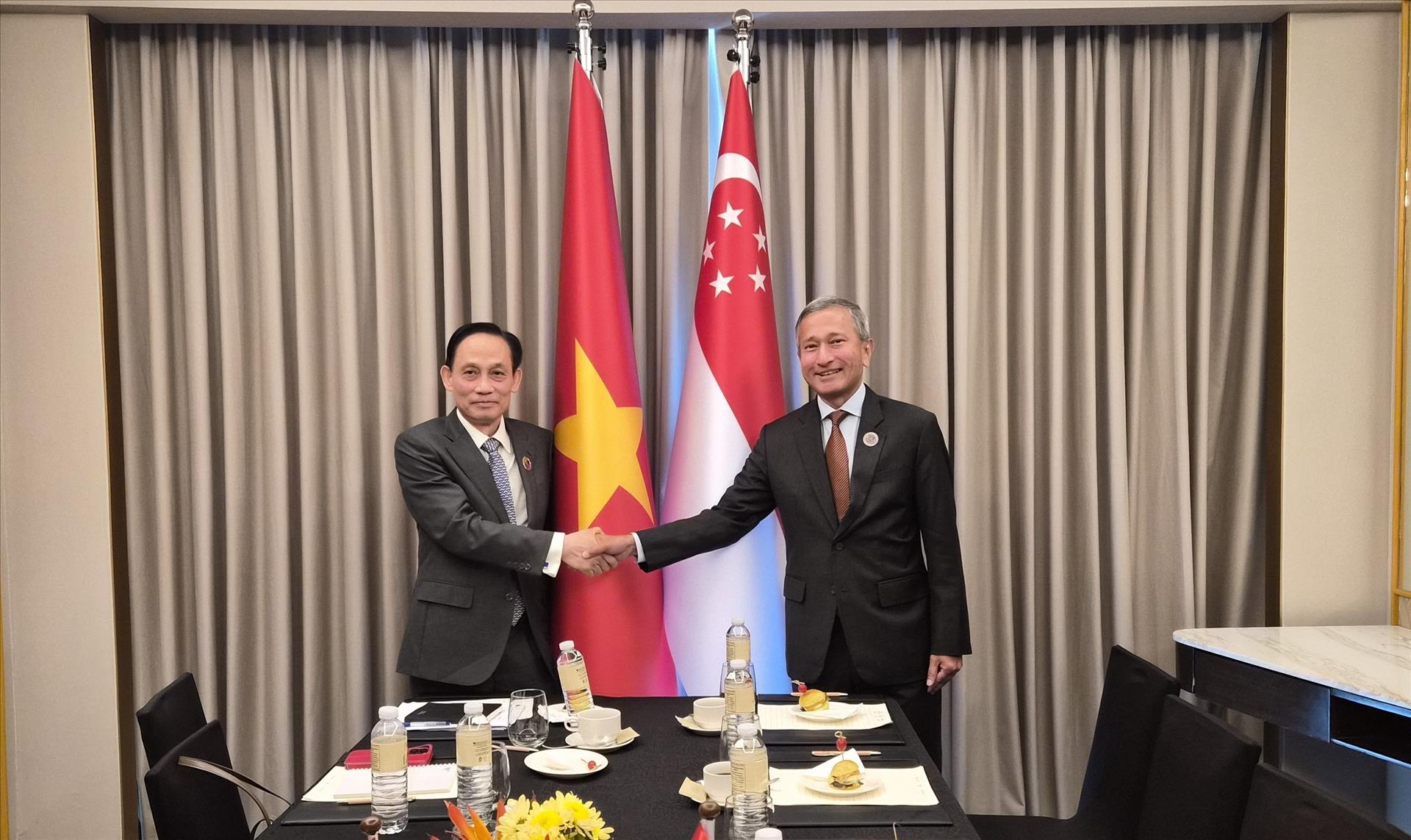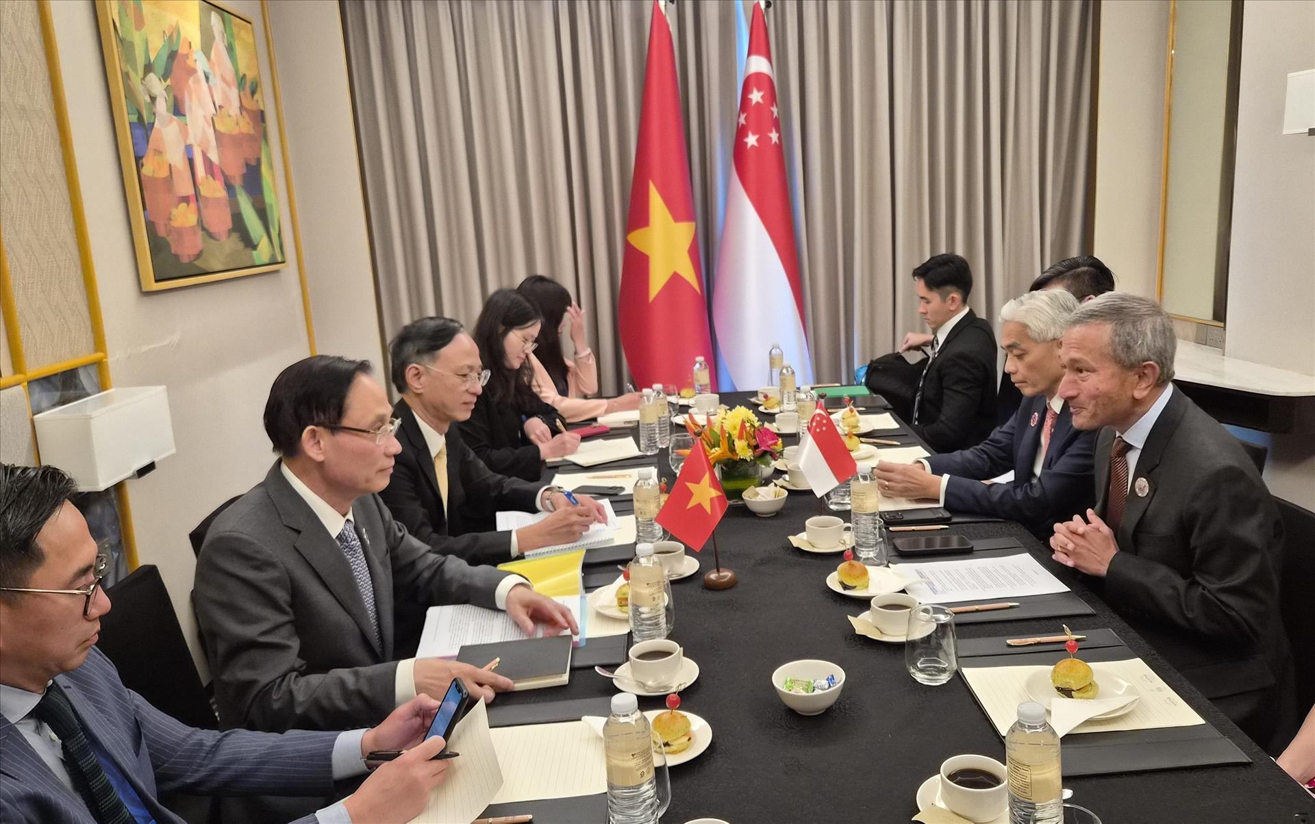 Cùng ngày, nhân dịp tham dự Hội nghị hẹp Bộ trưởng Ngoại giao ASEAN tại Cebu, Bộ trưởng Lê Hoài Trung đã có các cuộc gặp với Bộ trưởng Ngoại giao Singapore Vivian Balakrishnan, Bộ trưởng Ngoại giao và Hợp tác Timor Leste Bendito dos Santos Freitas. Tại các cuộc gặp, các Bộ trưởng đánh giá cao những tiến triển tích cực của hợp tác song phương, nhất trí phối hợp chặt chẽ hơn nữa, thiết lập, triển khai hiệu quả các chương trình hợp tác, đóng góp cho lợi ích của mỗi nước, quan hệ song phương cũng như hoà bình, ổn định và thịnh vượng của khu vực.
