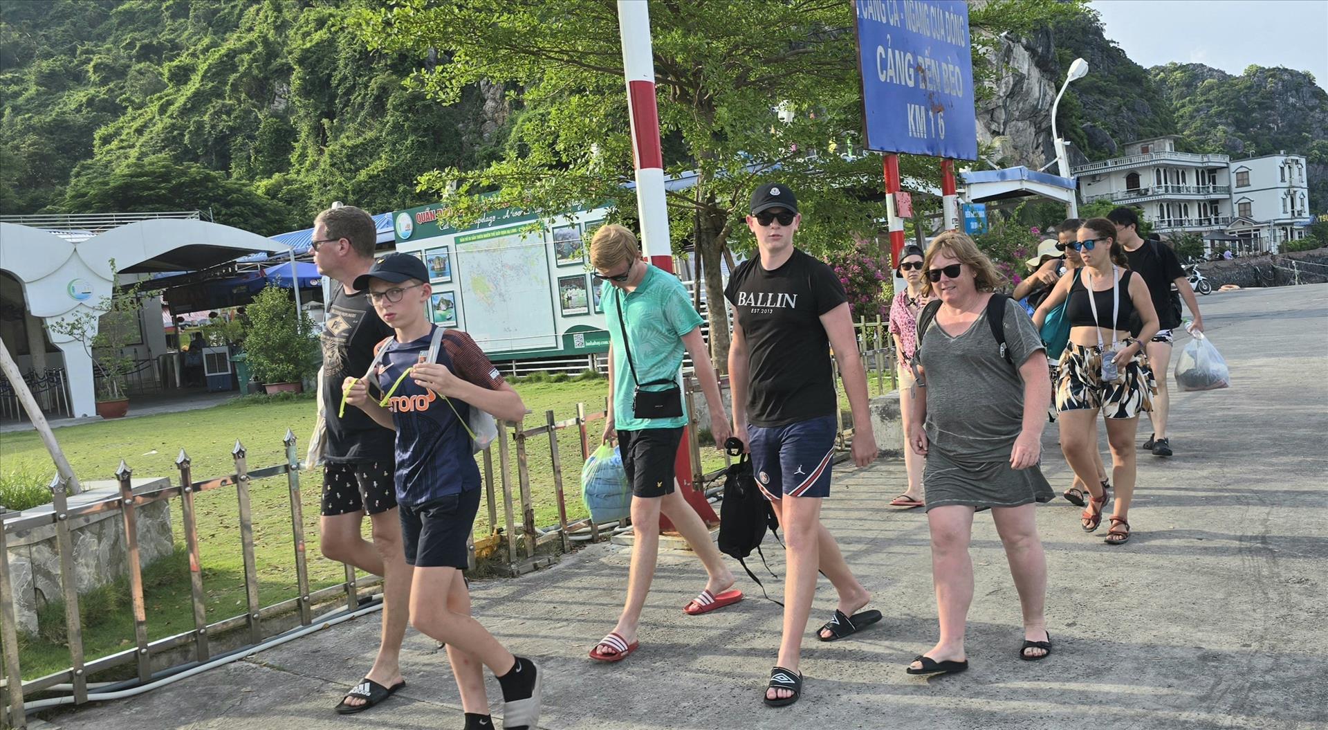 Du khách xuống bến tàu tham quan Vịnh Lan Hạ. Ảnh: Minh Thu - TTXVN