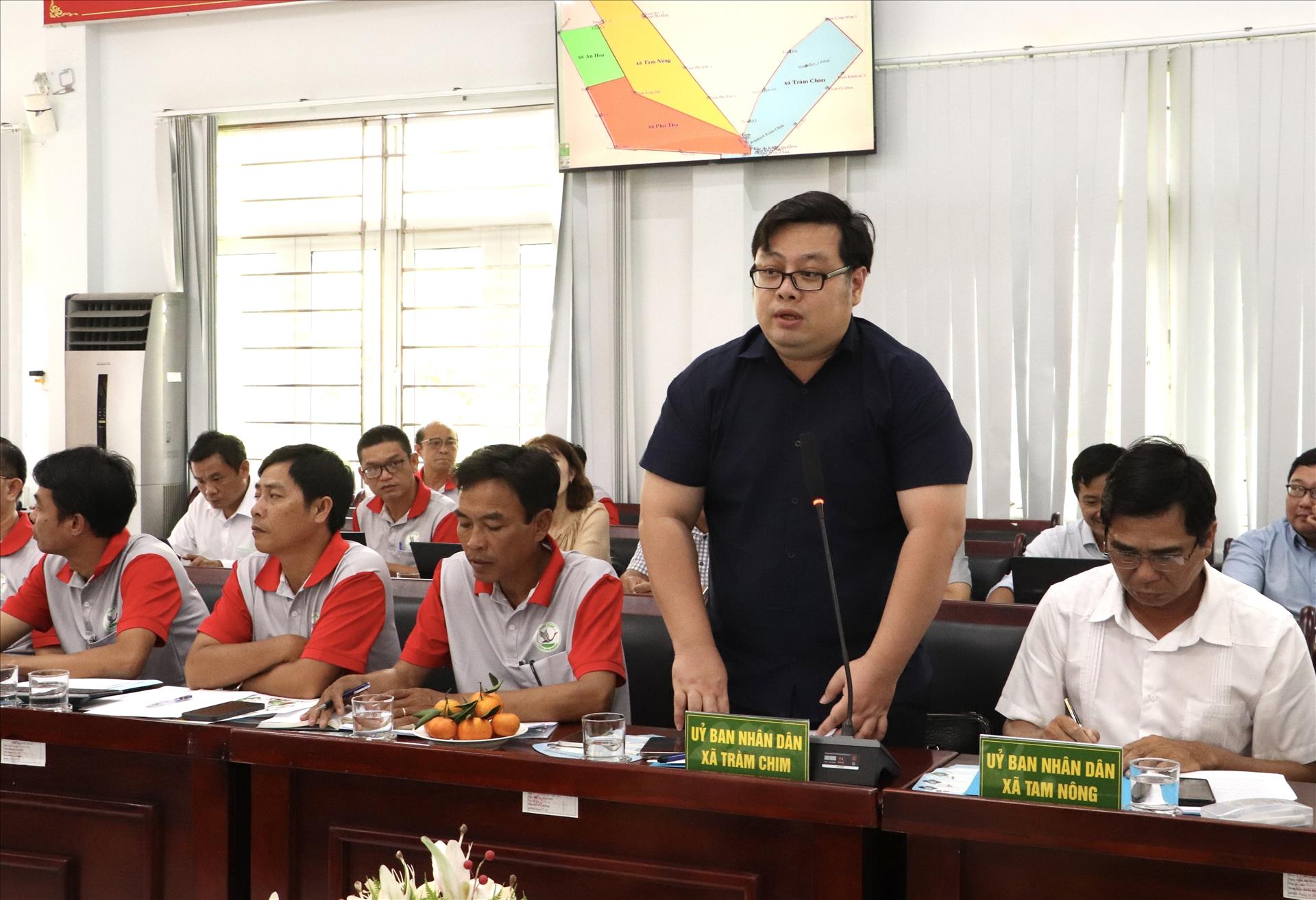 Ông Nguyễn Hồng Phong, Chủ tịch UBND xã Tràm Chim phát biểu. Ảnh: Hồng Nhung - TTXVN