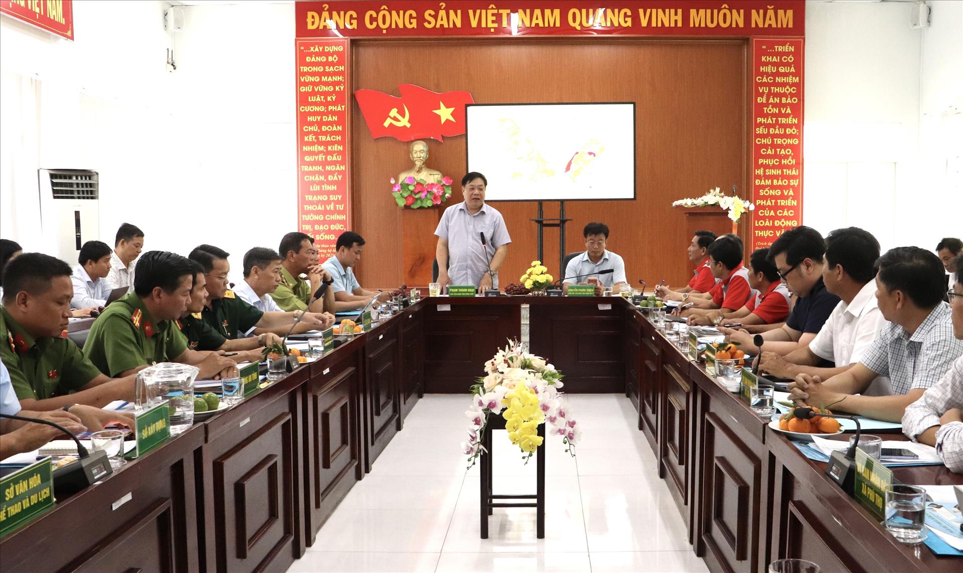Toàn cảnh buổi họp kiểm tra phòng chống cháy từng Vườn Quốc gia Tràm Chim. Ảnh: Hồng Nhung - TTXVN