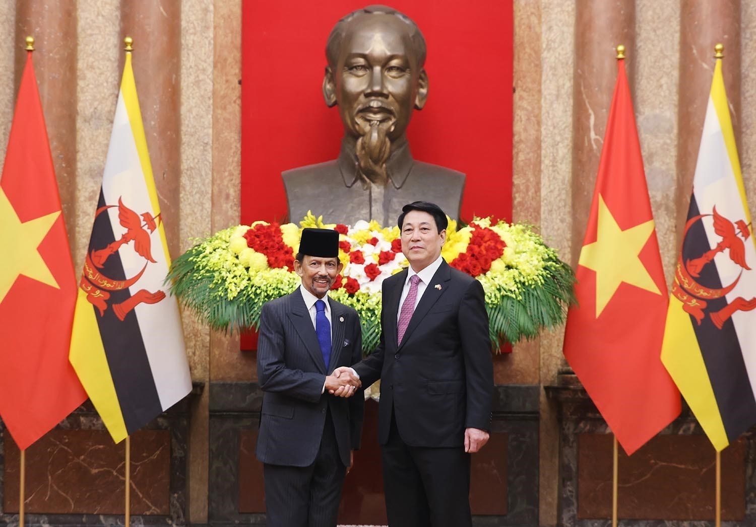 Sau lễ đón, Chủ tịch nước Lương Cường và Quốc vương Haji Hassanal Bolkiah dẫn đầu Đoàn cấp cao hai nước tiến hành hội đàm, đánh giá kết quả hợp tác giữa hai nước thời gian qua và đề xuất các phương hướng hợp tác thời gian tới./.