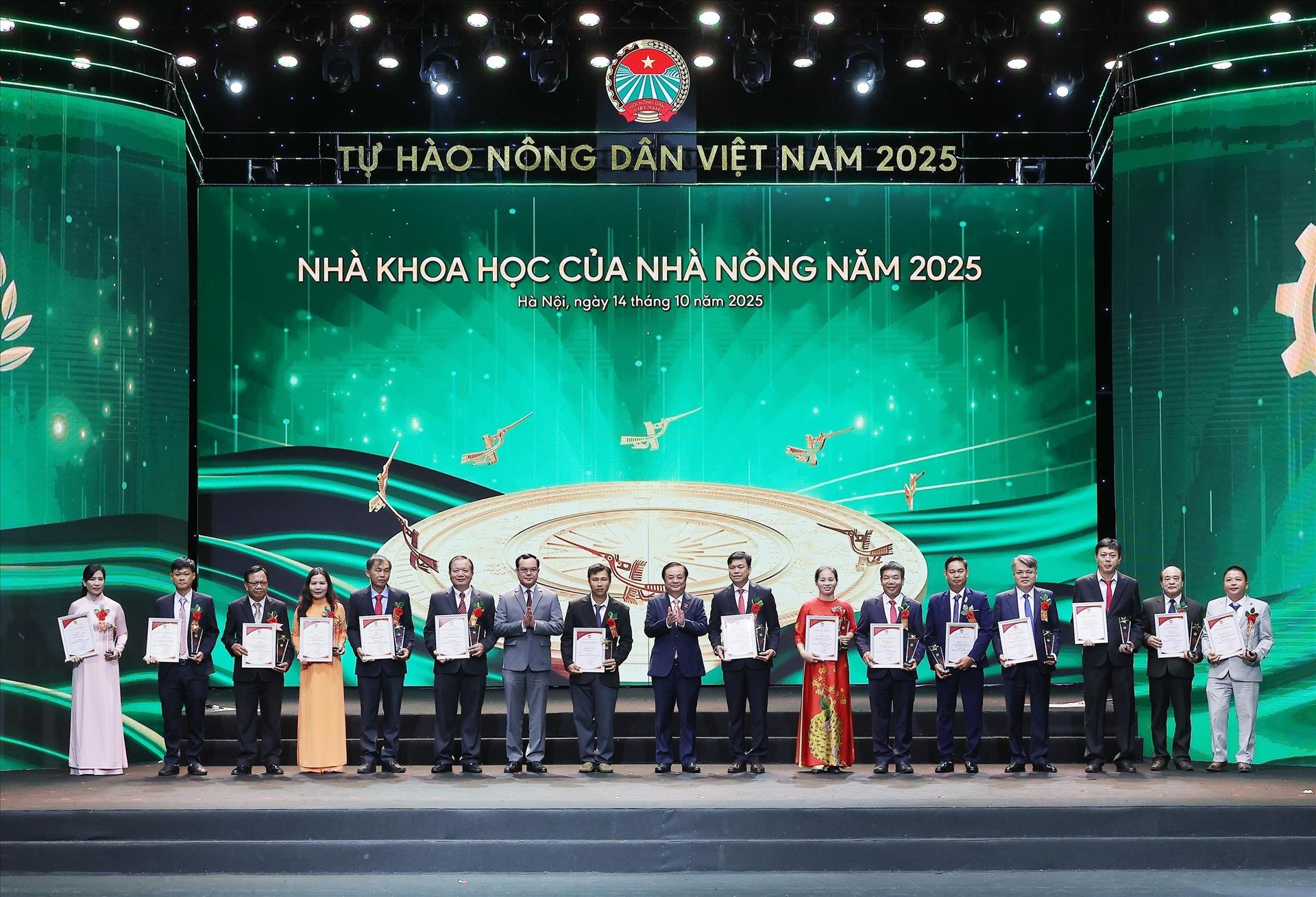 Tại buổi lễ, Trung ương Hội Nông dân Việt Nam đã tôn vinh và trao tặng danh hiệu Nông dân Việt Nam xuất sắc cho 63 cá nhân tiêu biểu và vinh danh 32 nhà khoa học của nhà nông năm 2025.