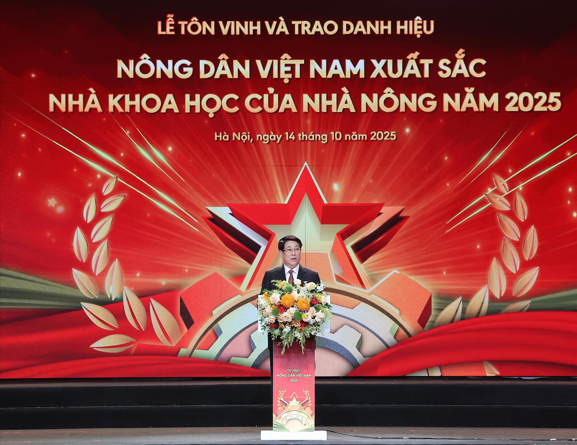 Chúc mừng các nông dân Việt Nam xuất sắc và nhà khoa học của nhà nông được vinh danh, Chủ tịch nước Lương Cường nêu rõ trong suốt chiều dài lịch sử của dân tộc Việt Nam, nông dân nước ta có vai trò rất quan trọng và đóng góp to lớn trong quá trình khai phá đất đai, mở mang bờ cõi, lập nước, xây dựng và bảo vệ Tổ quốc.