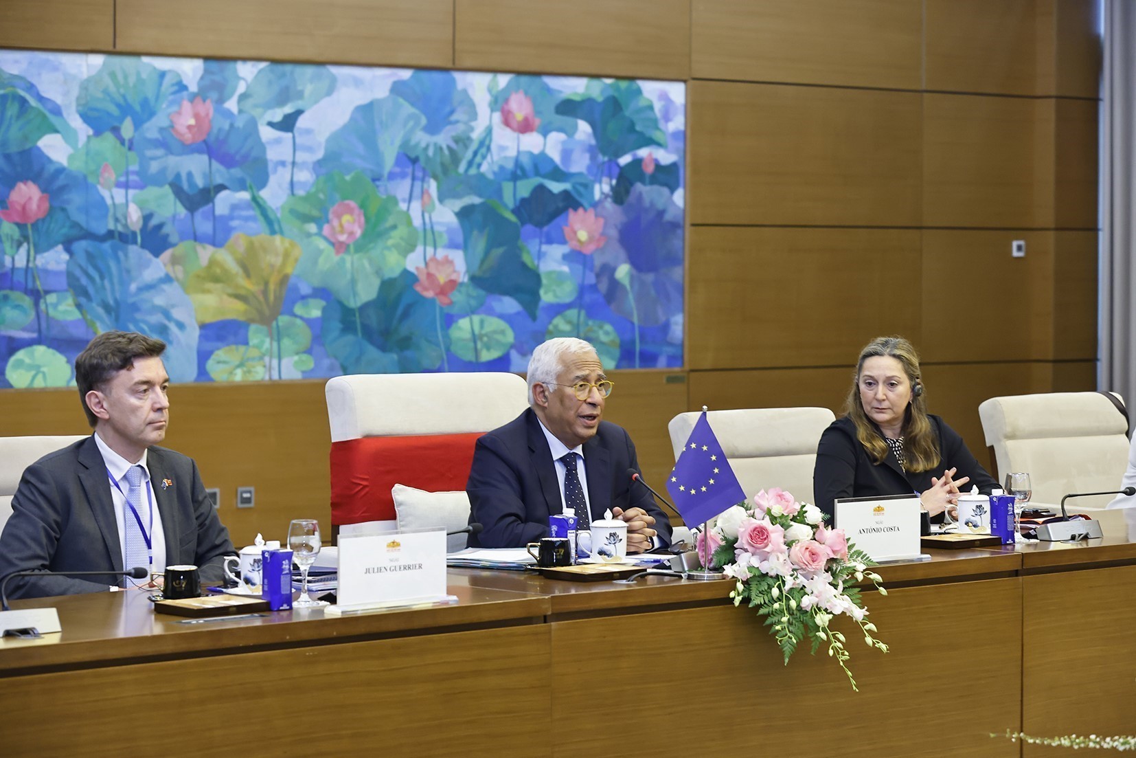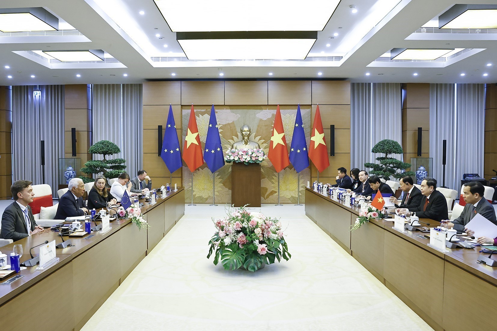 Chủ tịch Quốc hội Trần Thanh Mẫn hội kiến Chủ tịch Hội đồng châu Âu António Costa. Ảnh: Doãn Tấn - TTXVN