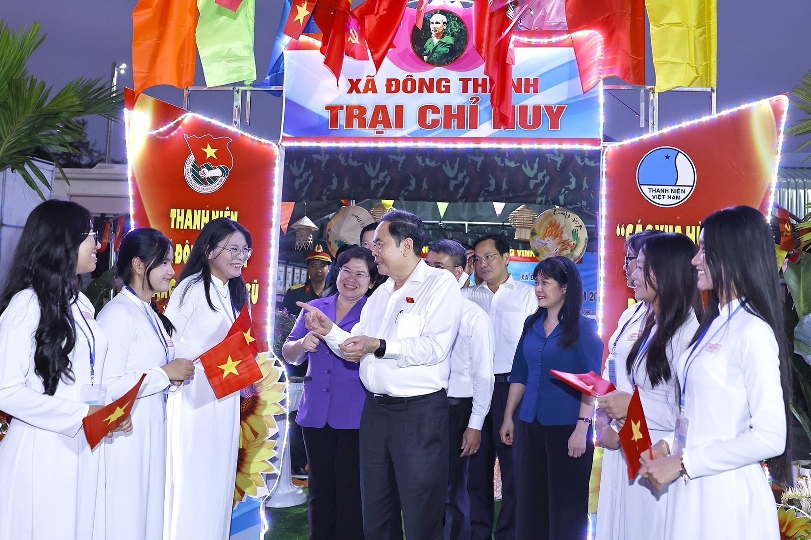 Chủ tịch Quốc hội Trần Thanh Mẫn dự đêm trại tòng quân tại xã Đông Thạnh, Thành phố Hồ Chí Minh. Ảnh: Doãn Tấn - TTXVN