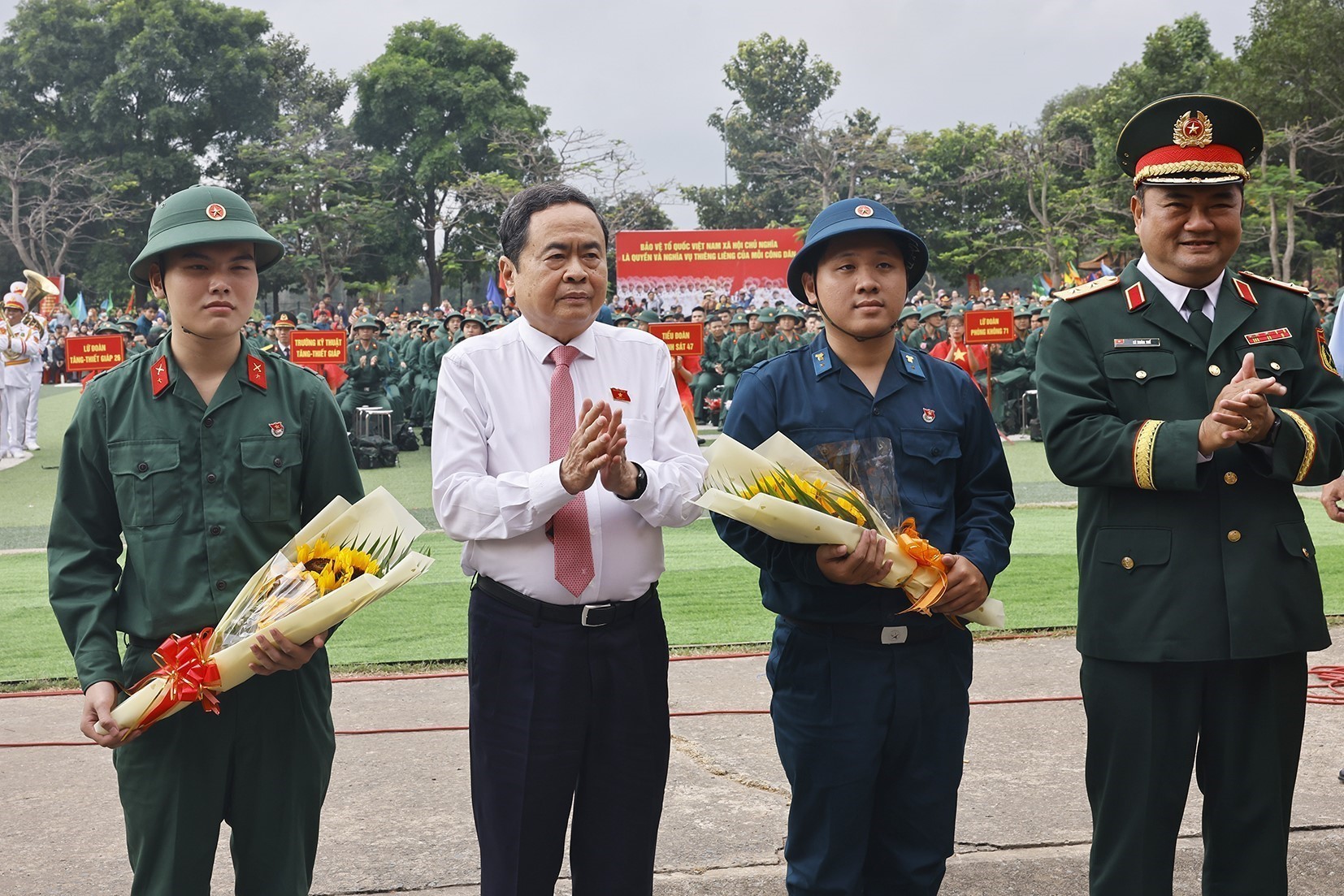 Chủ tịch Quốc hội Trần Thanh Mẫn động viên các tân binh. Ảnh: Doãn Tấn - TTXVN