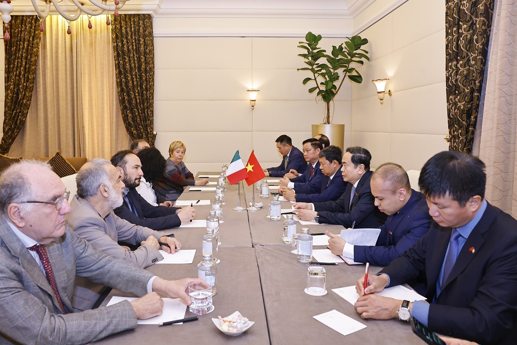 Chủ tịch Quốc hội Trần Thanh Mẫn khẳng định Italy là đối tác quan trọng hàng đầu của Việt Nam trong Liên minh châu Âu (EU) và mong muốn tăng cường hơn nữa quan hệ Đối tác Chiến lược Việt Nam - Italy trên tất cả các kênh, trong đó có kênh đối ngoại Đảng. Nhắc lại tình cảm và sự ủng hộ quý báu của nhân dân Italy trong công cuộc đấu tranh giành độc lập dân tộc, thống nhất đất nước trước đây và xây dựng, phát triển đất nước hiện nay, Chủ tịch Quốc hội khẳng định hai nước có nhiều điểm tương đồng, nhất là về truyền thống văn hóa và luôn dành cho nhau tình cảm tốt đẹp.